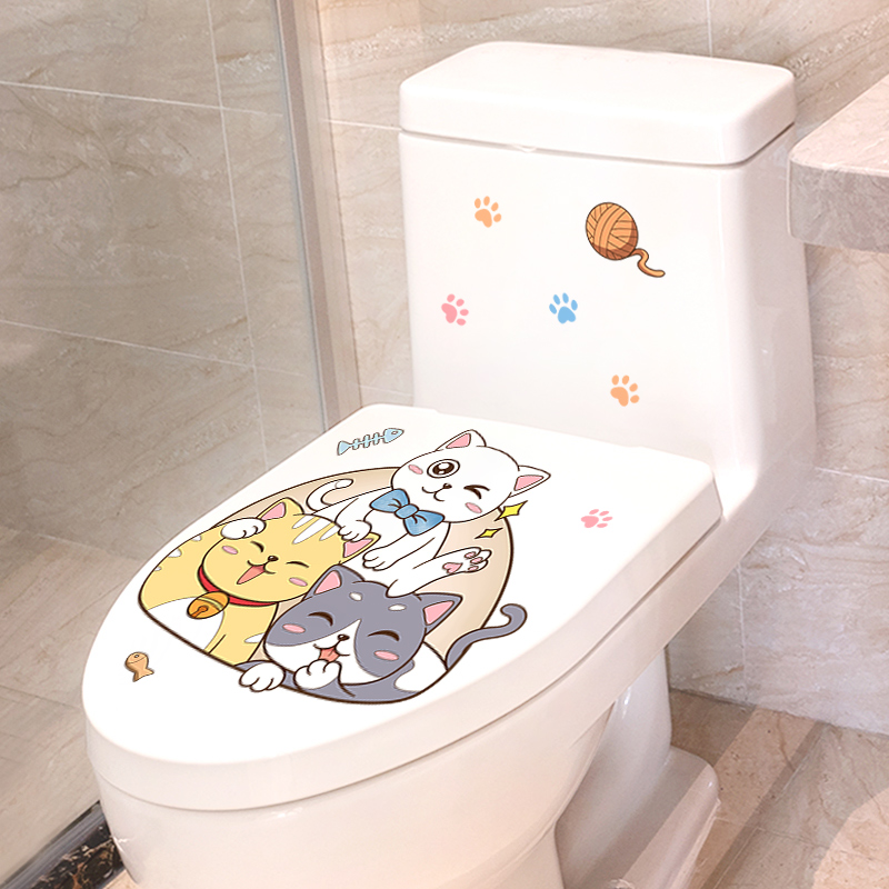 Cute Toilet Sticker Creative Makeup room Toilet Lid Decorated Cartoon Cat stickler Toilet Waterproof Sitting Poop Sticker