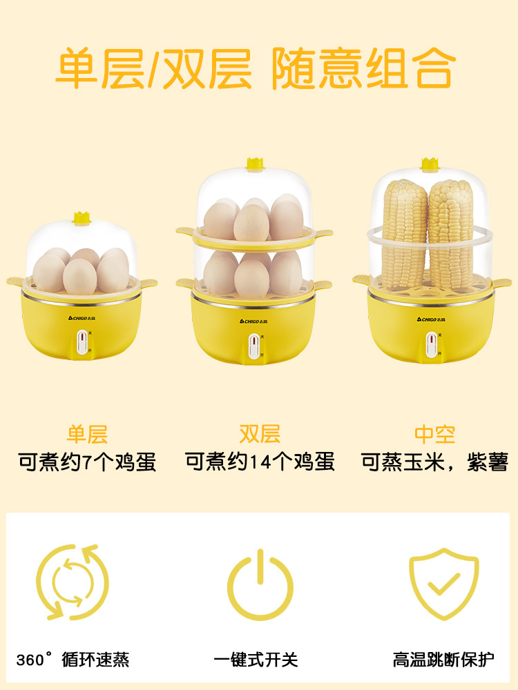 Zhigao boiled egg steamer home small automatic power-off egg custard multi-functional stainless steel breakfast artifact new