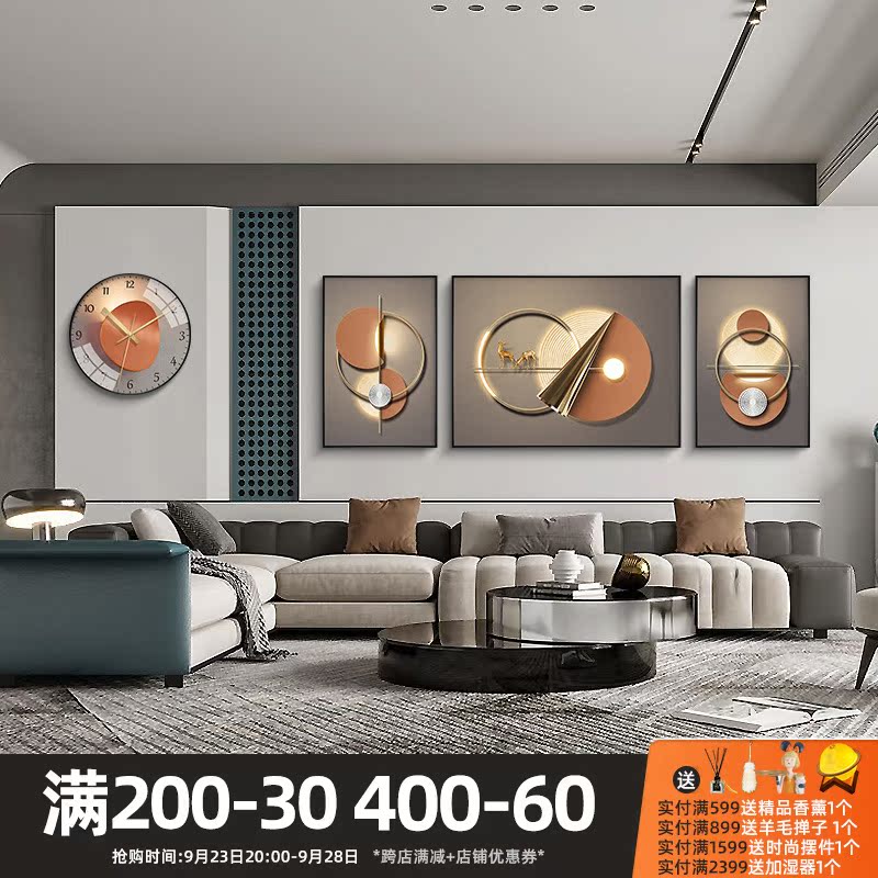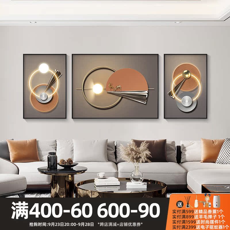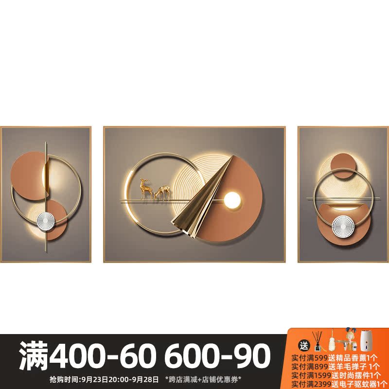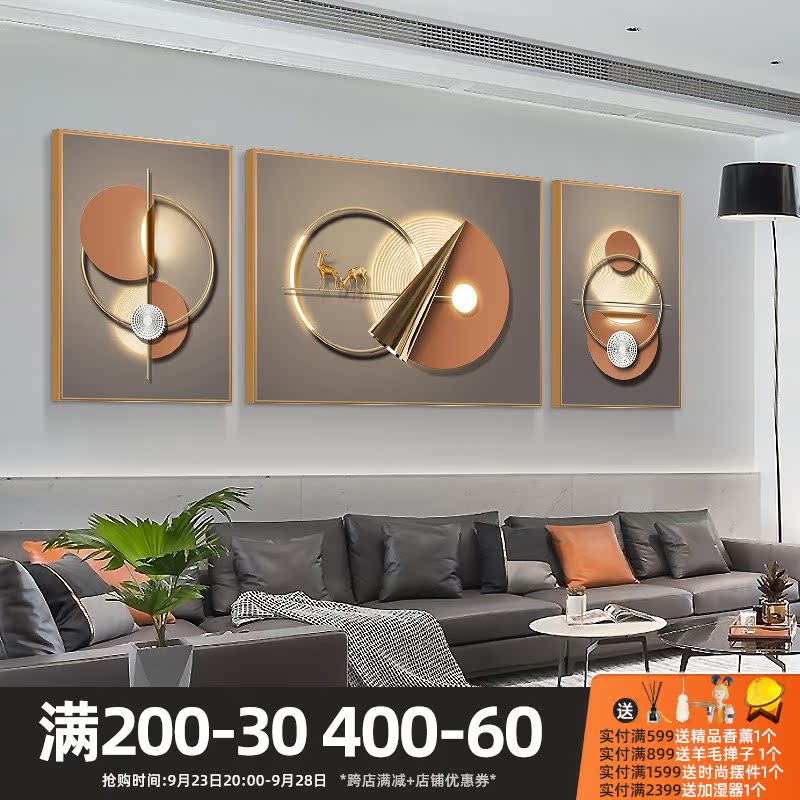 Fu Lu full circle light luxury sofa background wall decoration painting living room high-end atmospheric painting creative geometric triptych