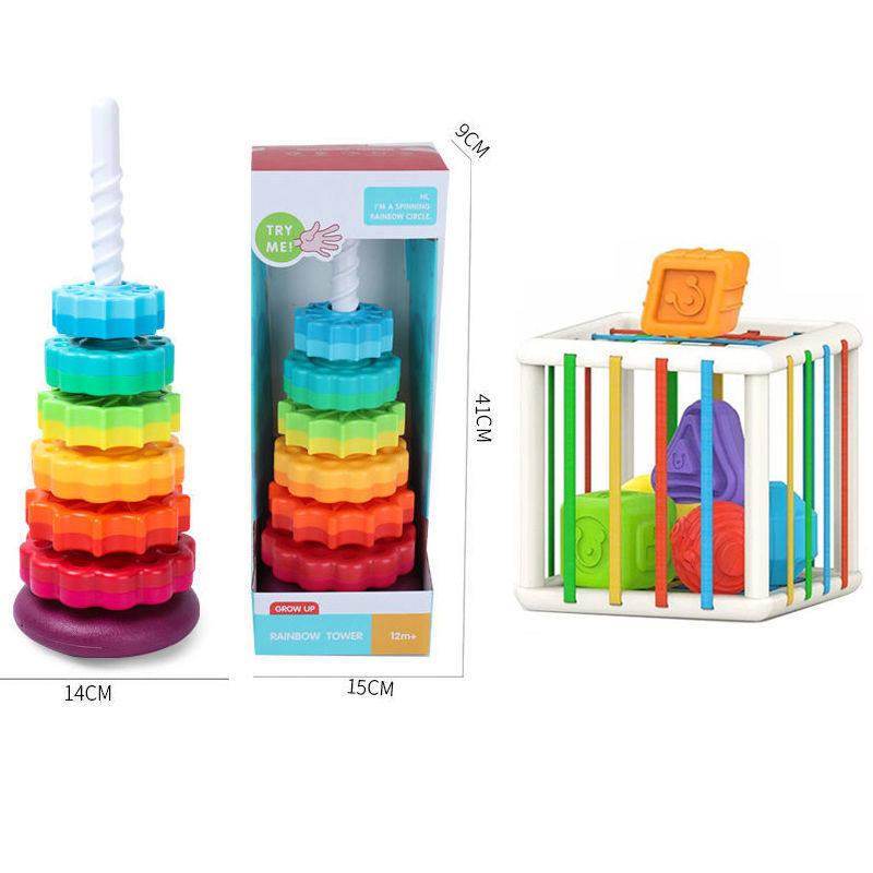 Rainbow Transits Le Children Early Education Puzzle Transfer Tower Infant Toddler Toys Stack of Laminated Loop Layers of Cups