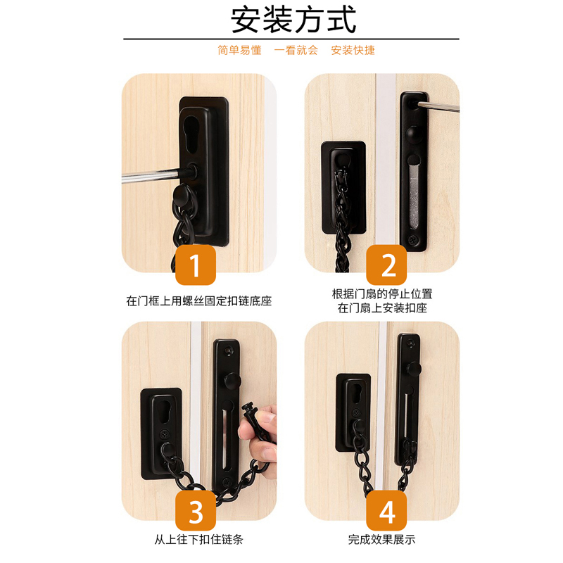 Stainless steel door chain anti-lock safety lock chain lock bolt door buckle hotel room door lock chain artifact door latch