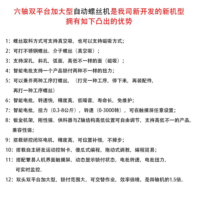 Six-axis automatic locking screw machine magnetic deposit six-axis automatic locking screw machine vacuum deposit six-axis automatic locking screw machine blowing type deposit above price non-real price details please contact customer service telephone