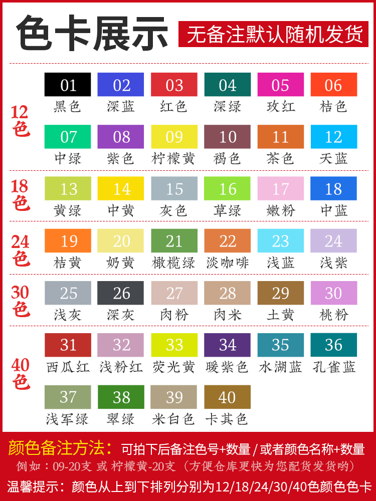 Sniel Mick Paper 40 color children's suit color comics special double head anime art students 30 color collection box single self - selected elementary school students speed dry 24 color oil black mark pen