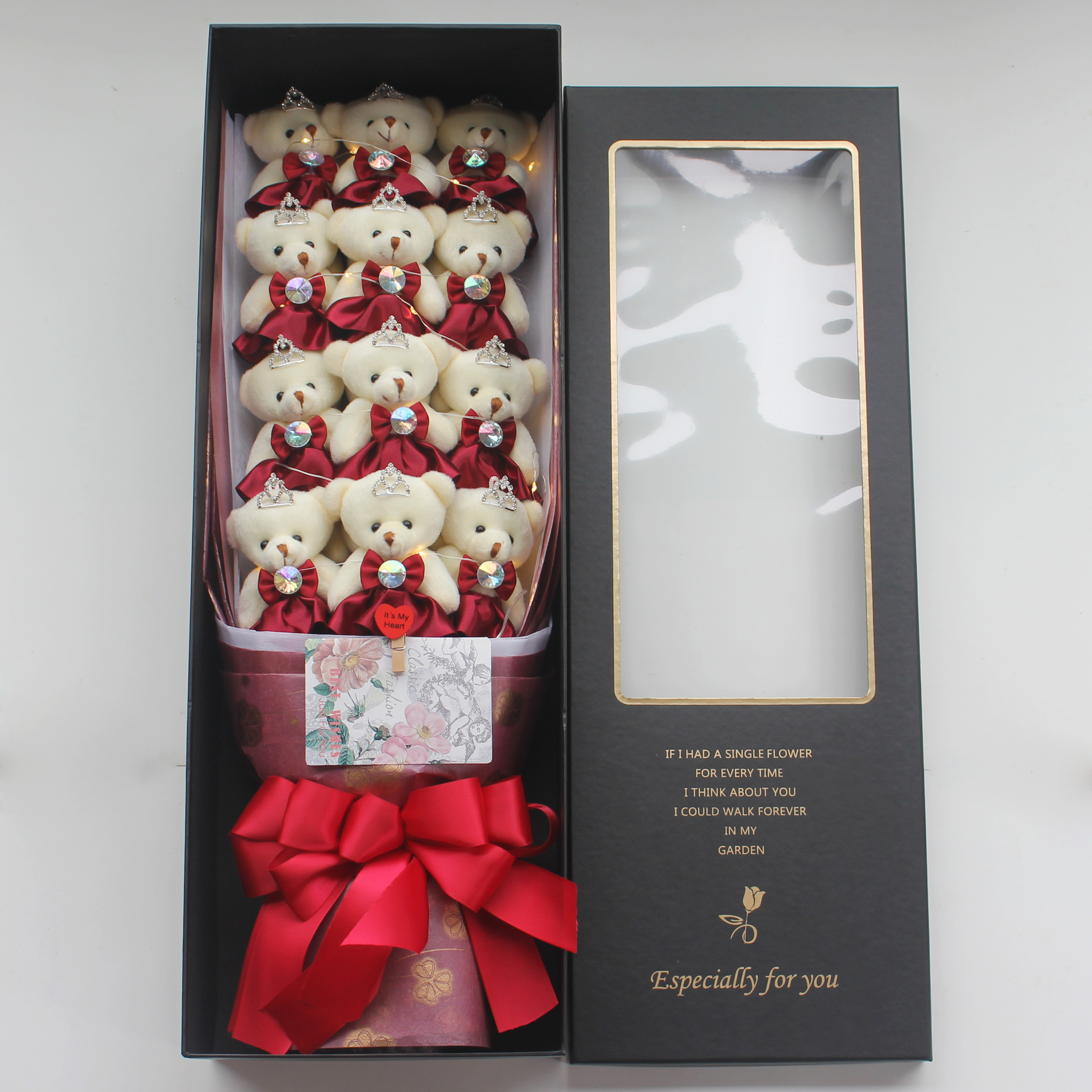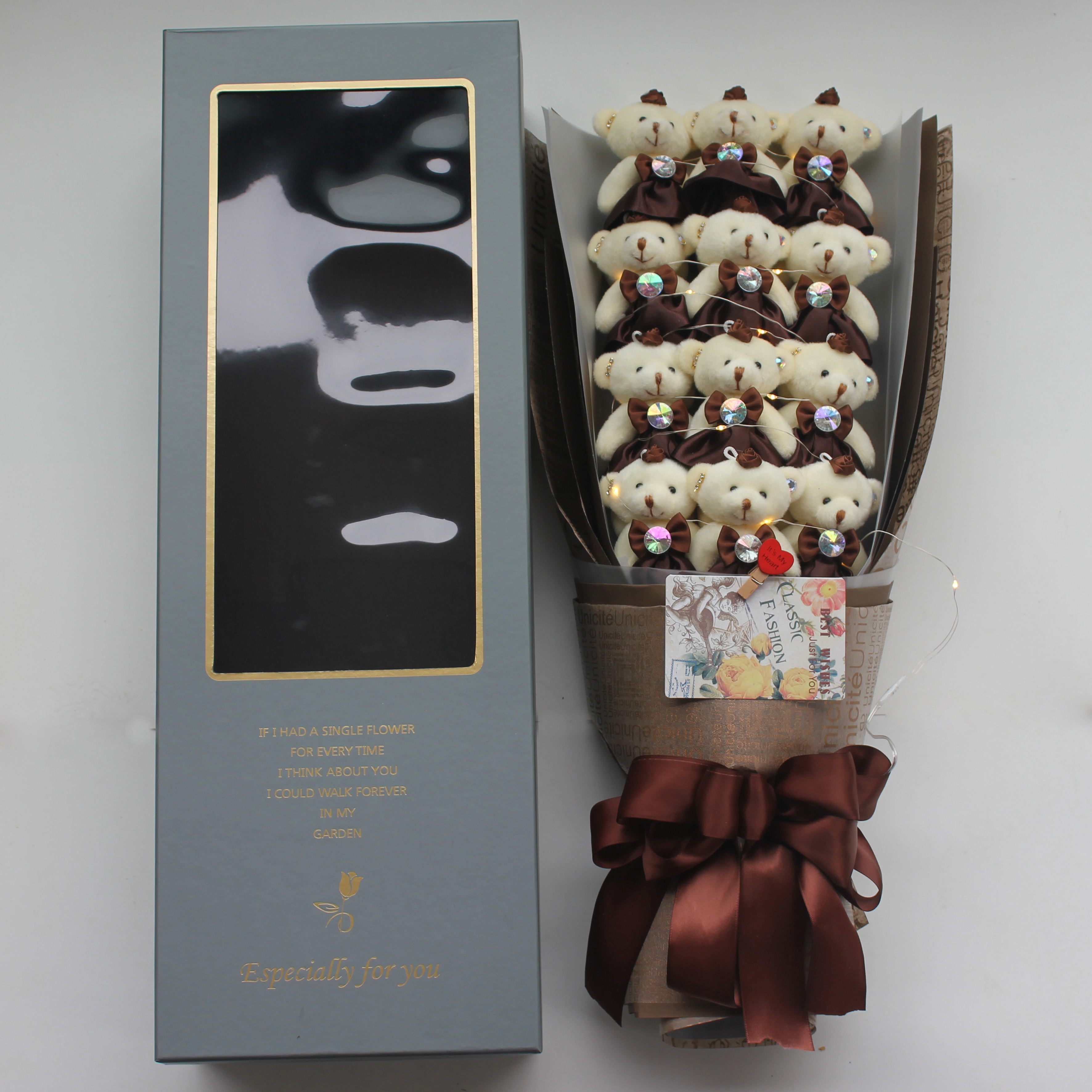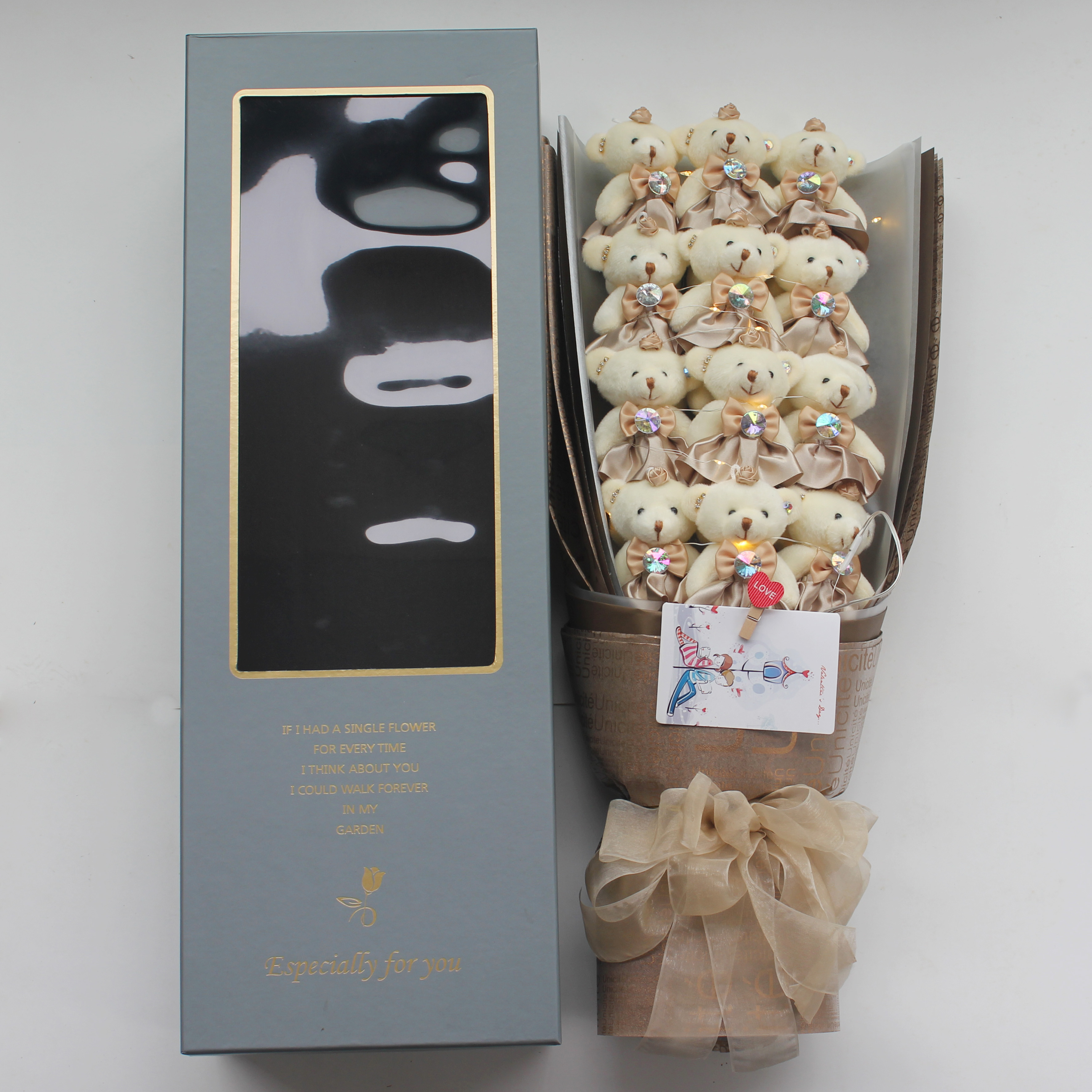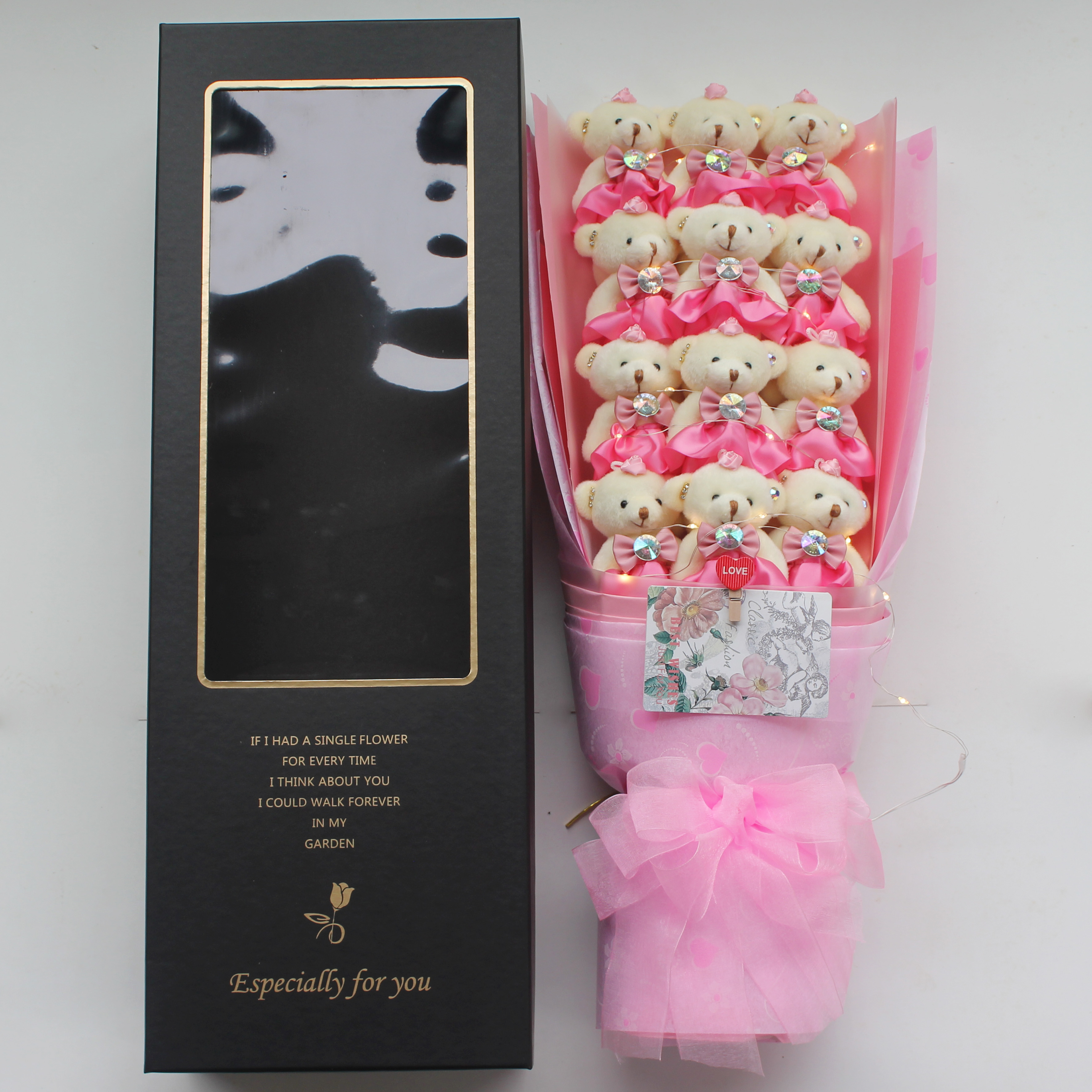 Han Edition of Ink Green Ya Bear Bouquet Bouquet Box (with Light) Han Edition Pink and Classic Bear Bouquet Bouquet Bouquet Bouquet Bouquet (with Light)