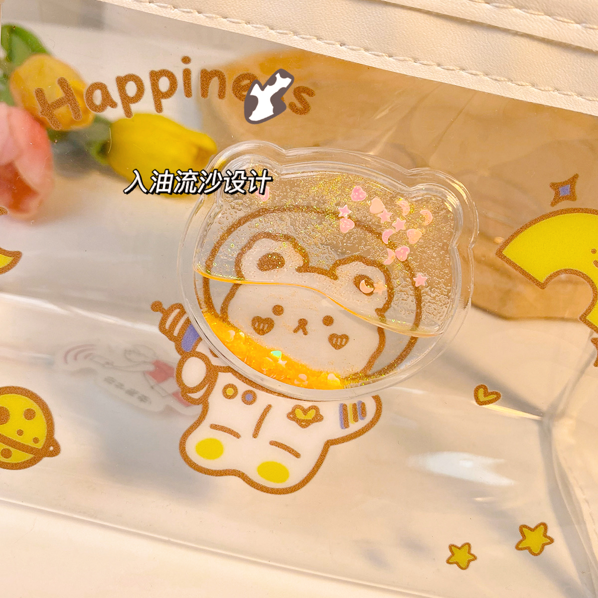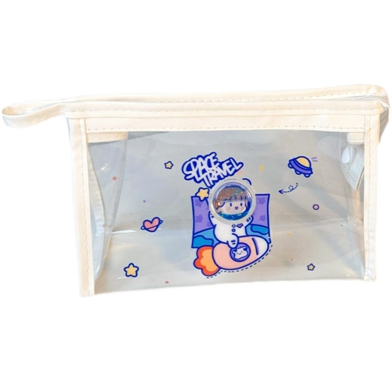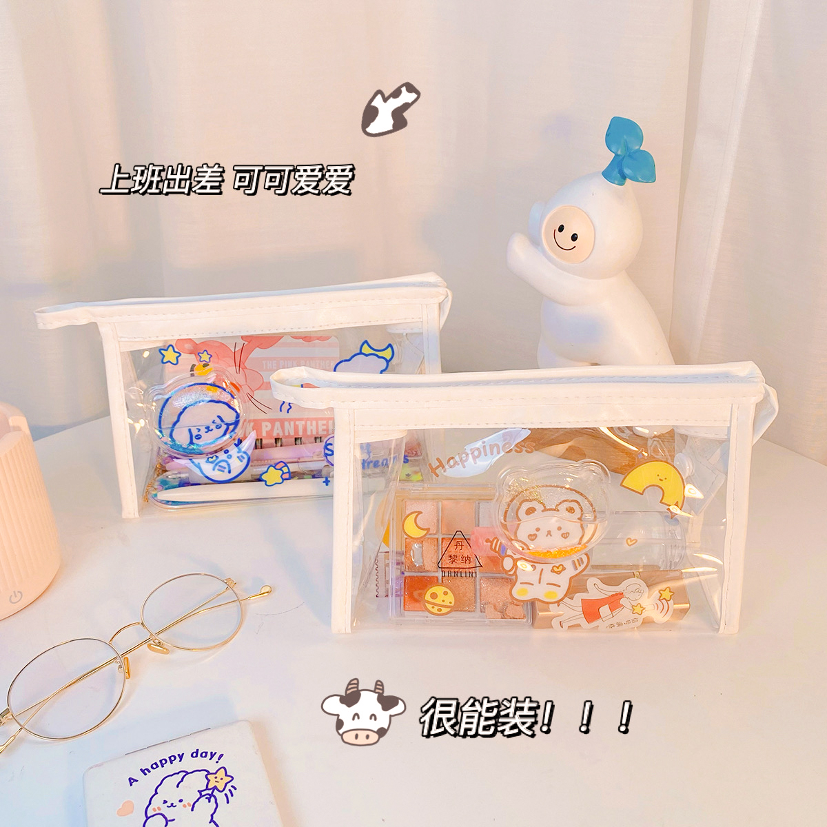 Creative Streaming Sand Pen Bag Makeup Bag Girl Heart Transparent Pvc Cashier Bag Ins Wind Large Capacity Stationery Containing Bag