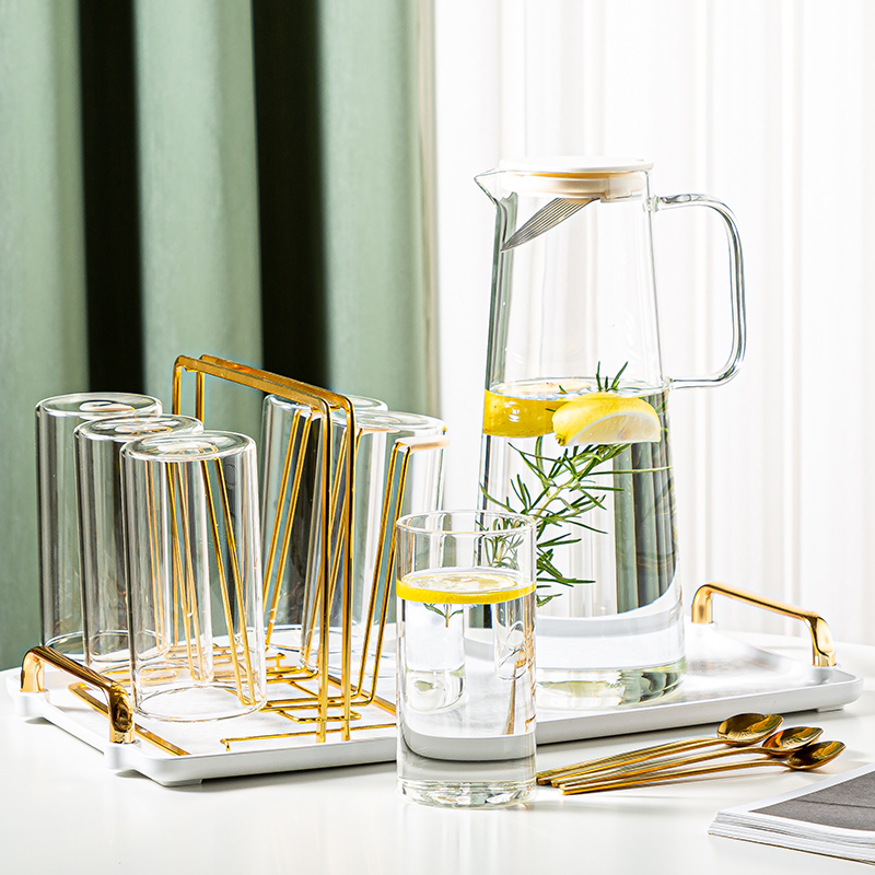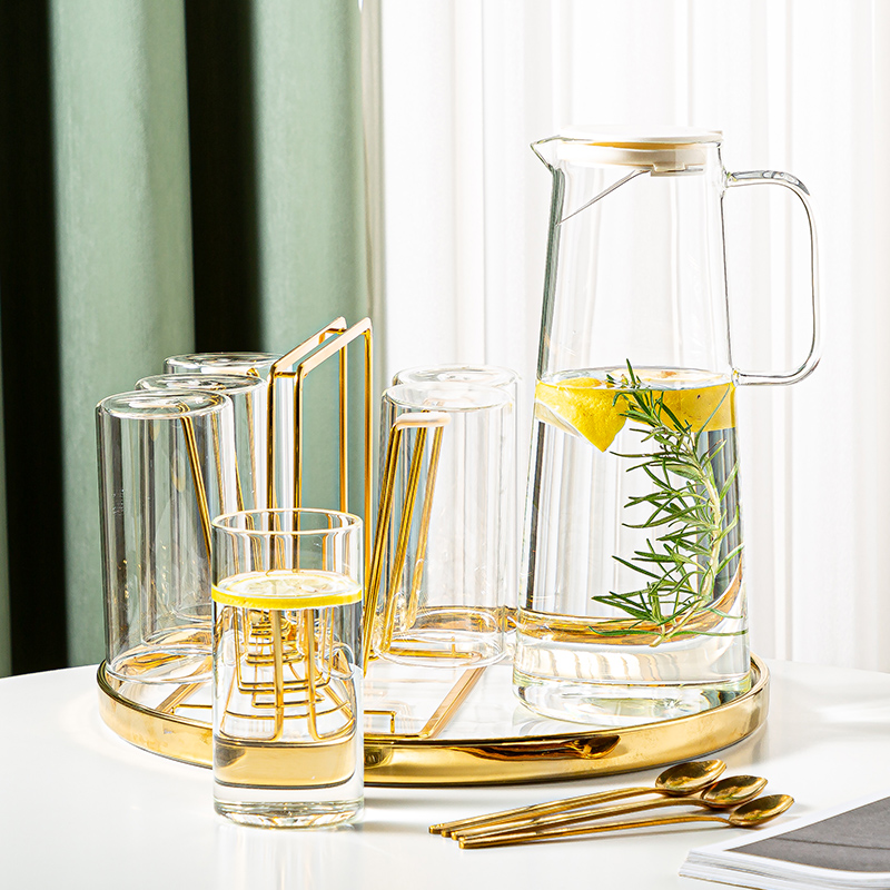 Transparent belt to pot straight Cup 6-piece plastic tray 4 spoons transparent belt to pot straight Cup 6-piece ceramic tray 4 tablespoons transparent belt to pot straight Cup 6-piece set round tray 4 spoons