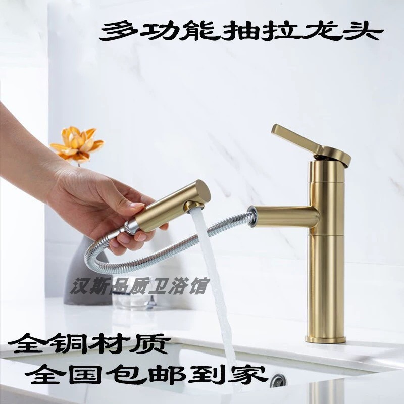 German Hans faucet pull-out washbasin basin hot and cold faucet all copper telescopic bathroom white faucet