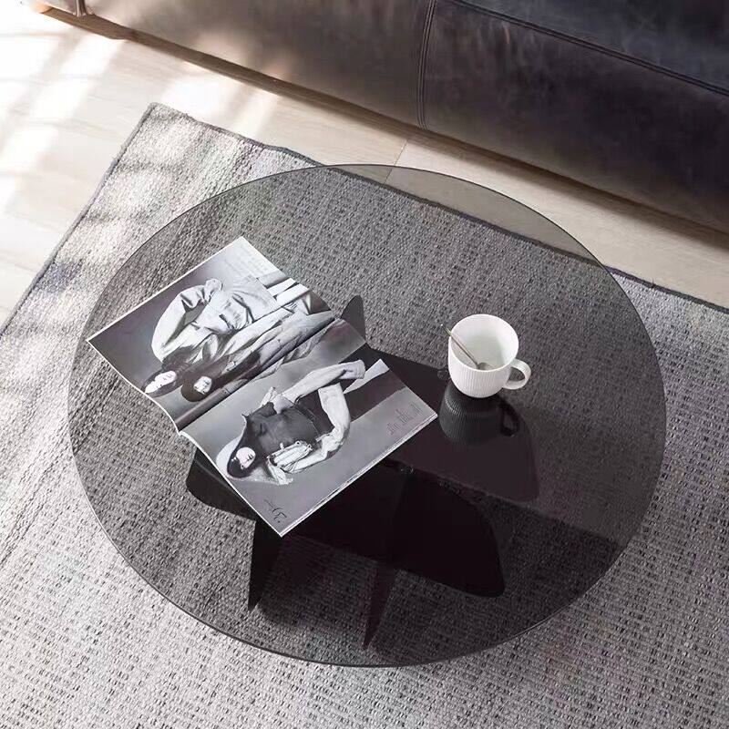 Extremely minimalist tempered glass round tea table light extravagant modern Nordic minimalist designer-like board room rock plate tea table