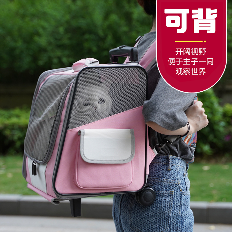 Pull Rod Cat Bag Out of portable pet Bag Cat cat Carry with double shoulder bag Back Drawable Summer Breathable Cat Box