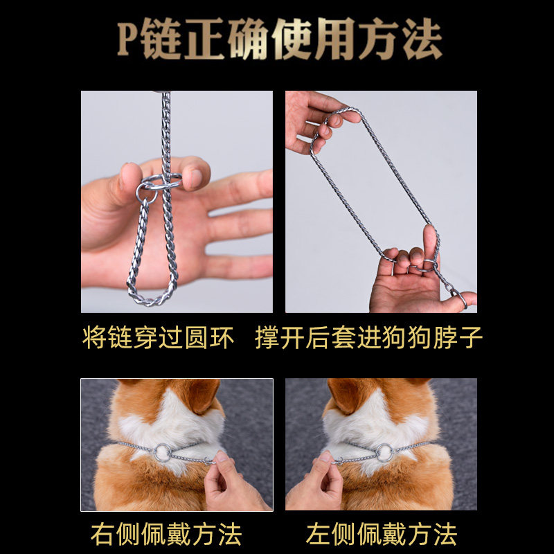 Dog p chain collar traction rope medium and large dog chain small dog corgi anti-punch training rope snake chain explosion-proof punch