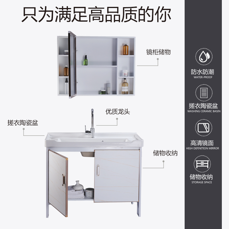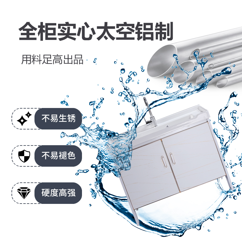Space aluminum floor bathroom cabinet combined modern simple handwash basin cabinet in one-size-fits-all hands-wash with rubber tablet