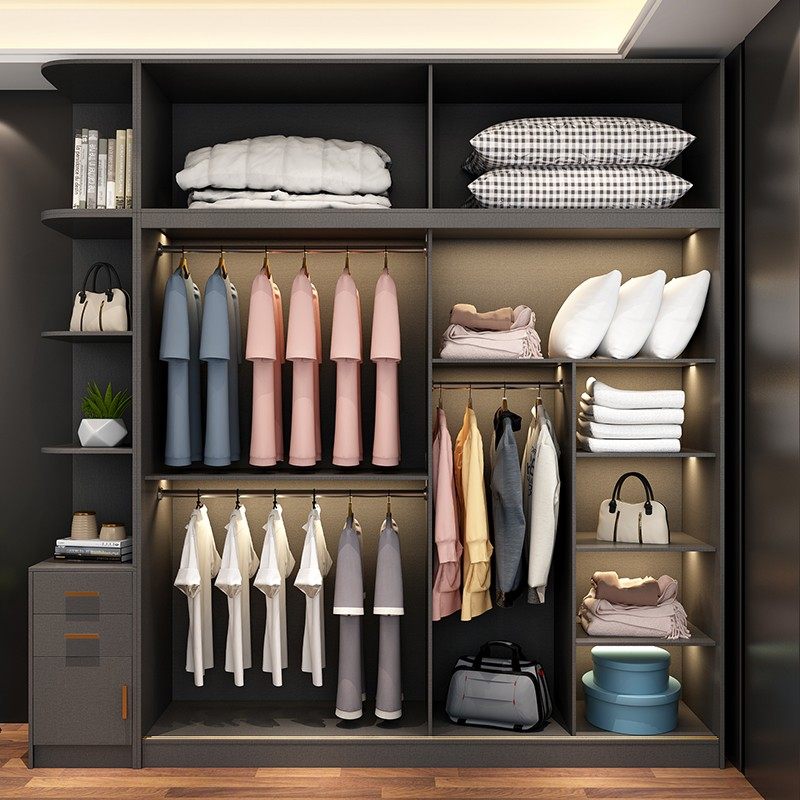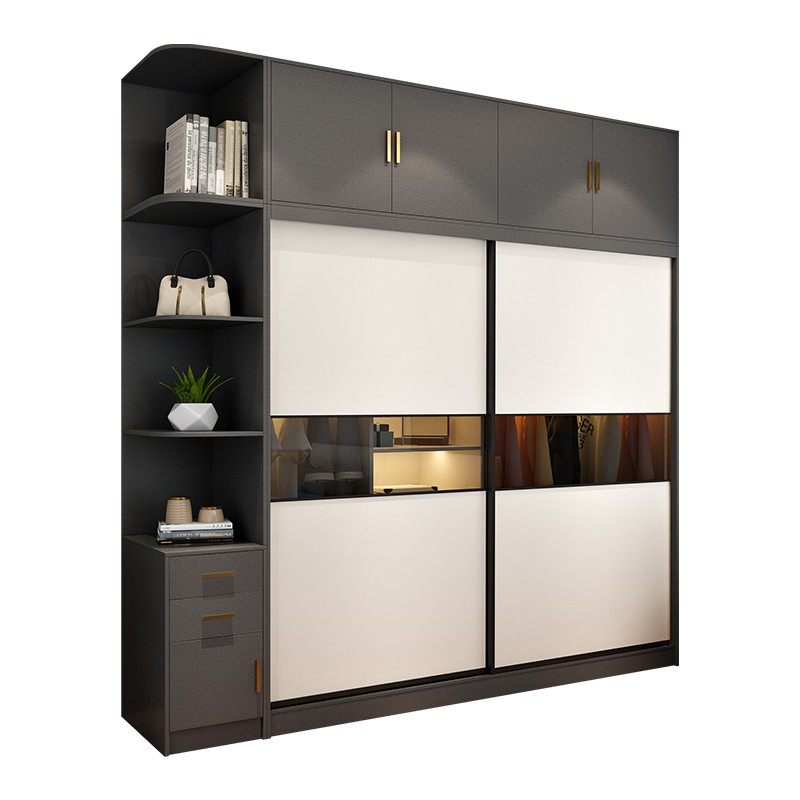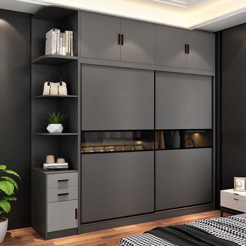 Foshan solid wood multi-layer wardrobe modern minimalist bedroom fashion Nordic sliding sliding door small apartment large wardrobe