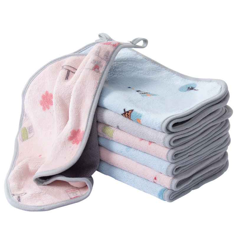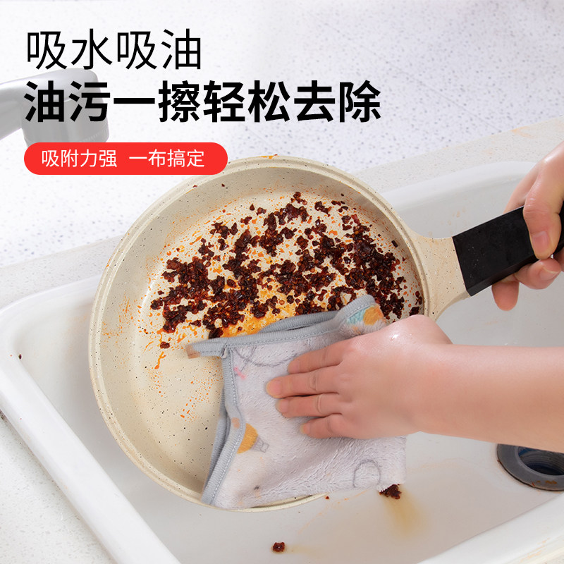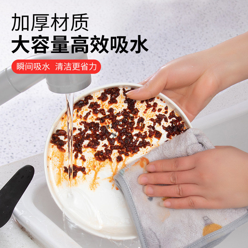 Household thickened double-layer dishcloth kitchen rag does not absorb water and does not lose hair coral velvet cleaning to remove oil linen to wipe the table