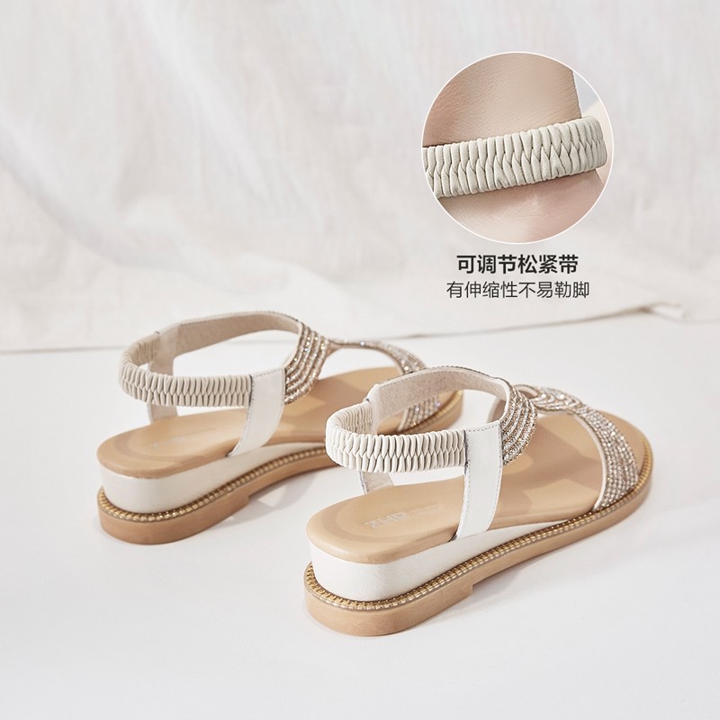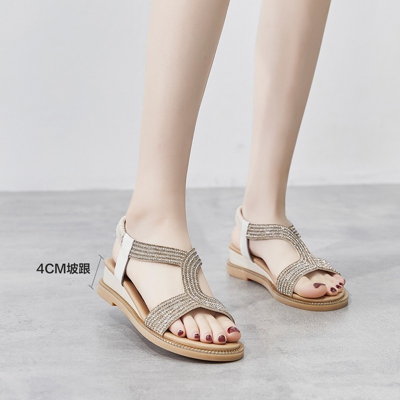 Summer Sandals Women Fairy Wind 2021 Seasons New leather Soft bottom elastic with water drill slopes with women's shoes