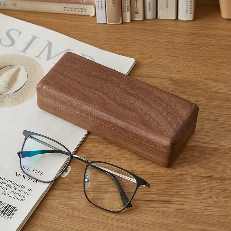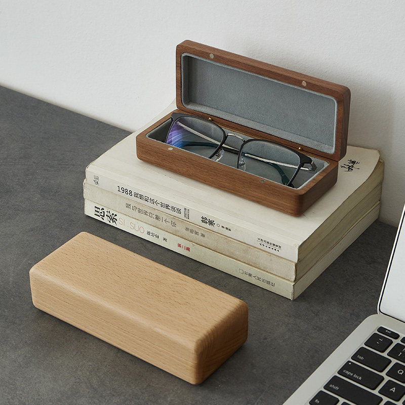 Glass box contains high-sense men and women portable anti-pressure in wind Japanese retro-solid wood literary and artistic gifts