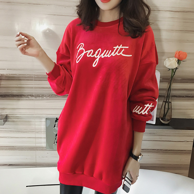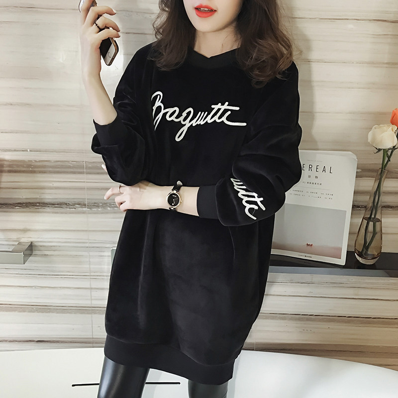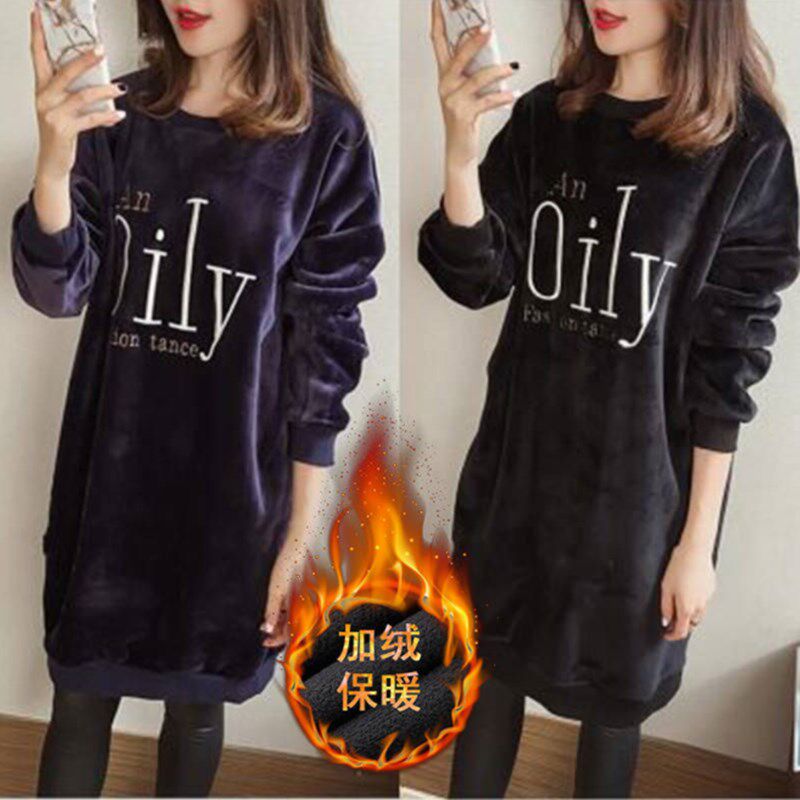 Pregnancy Woman Dress Autumn Winter Large Size Medium Long Version Gold Velvet Plus Suede Thickened Thick Cotton T Suit Gold Suede Warm Beating Base Blouse