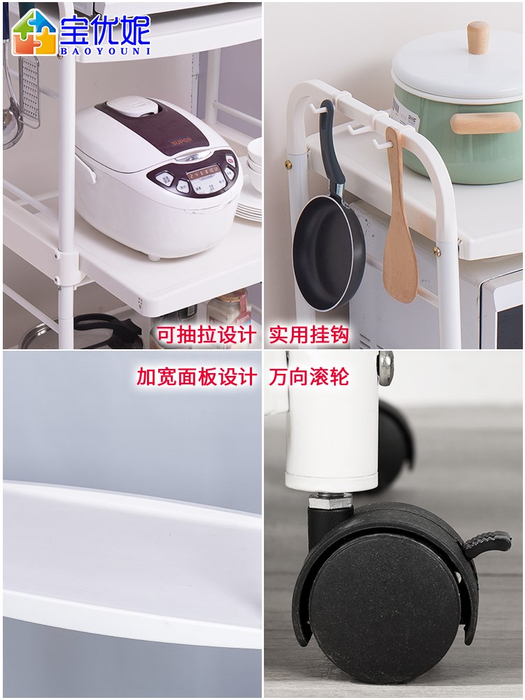 Kitchen shelf landing multi-floor mobile cart with wheel living room small household appliance rack