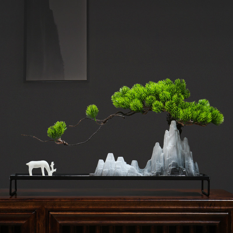 Simulation green planting new Chinese welcome guest pine bonsai swinging piece Living room Kanguan Cabinet-style Rooms Hotel Decoration Zen soft dress-Taobao