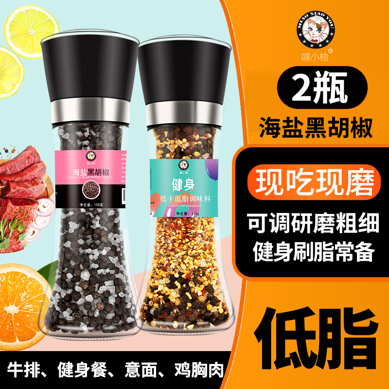 Sea salt black pepper grinder steak pepper mixed flavor low fat fitness chicken breast 2 bottles