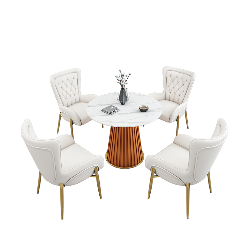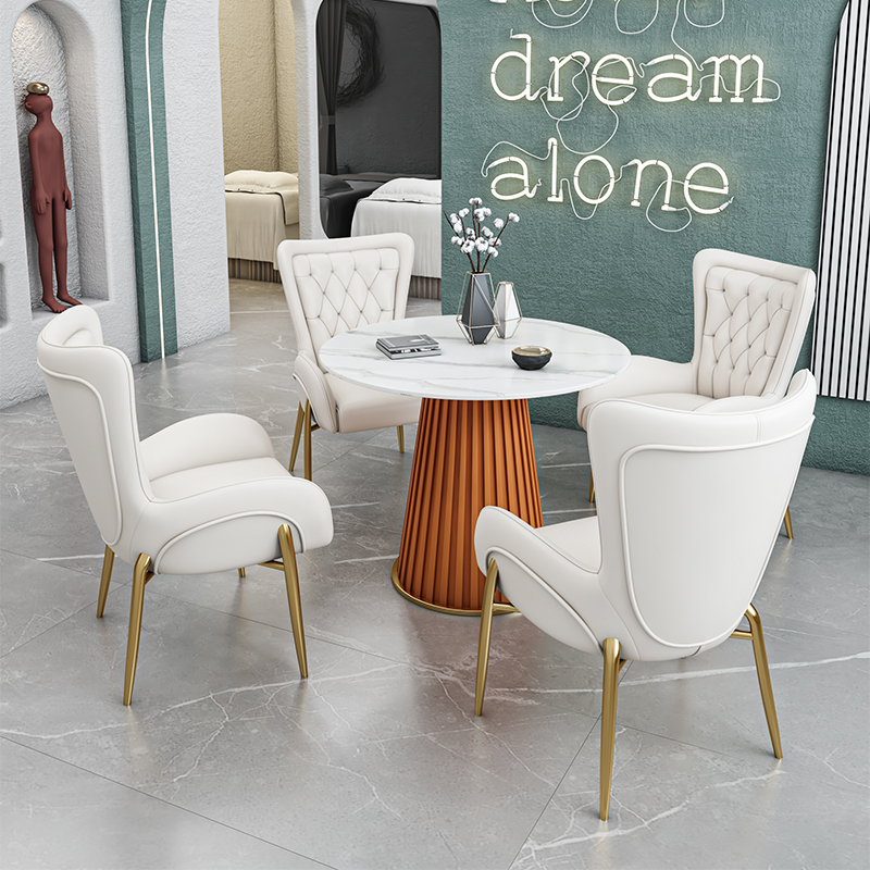 Nordic light luxury dining room slate round dining table household small apartment milk tea shop leisure reception small round table and chair combination