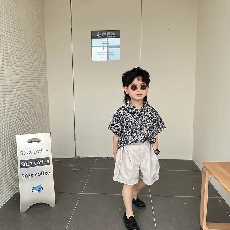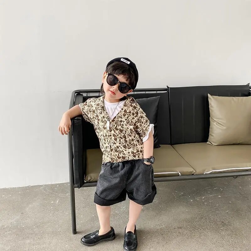 Boys summer shirt 2021 new Korean version of children's short-sleeved tops boys wear thin half-sleeved shirts cool
