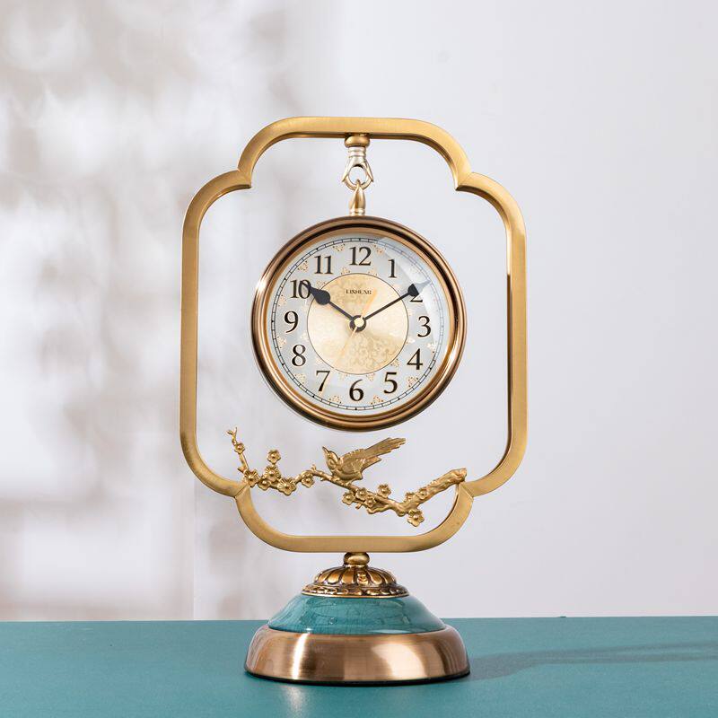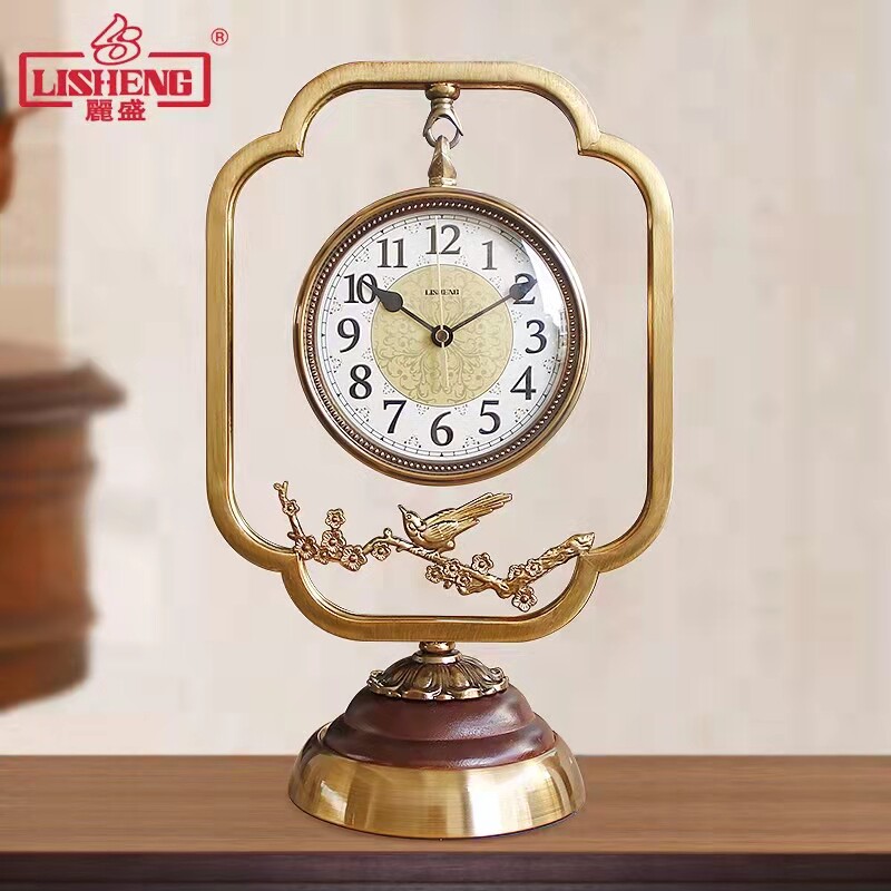 Chinese metal seat clock living room mute and watch swing piece Creative desktop desktop Domestic seat clock minimalist fashion clock