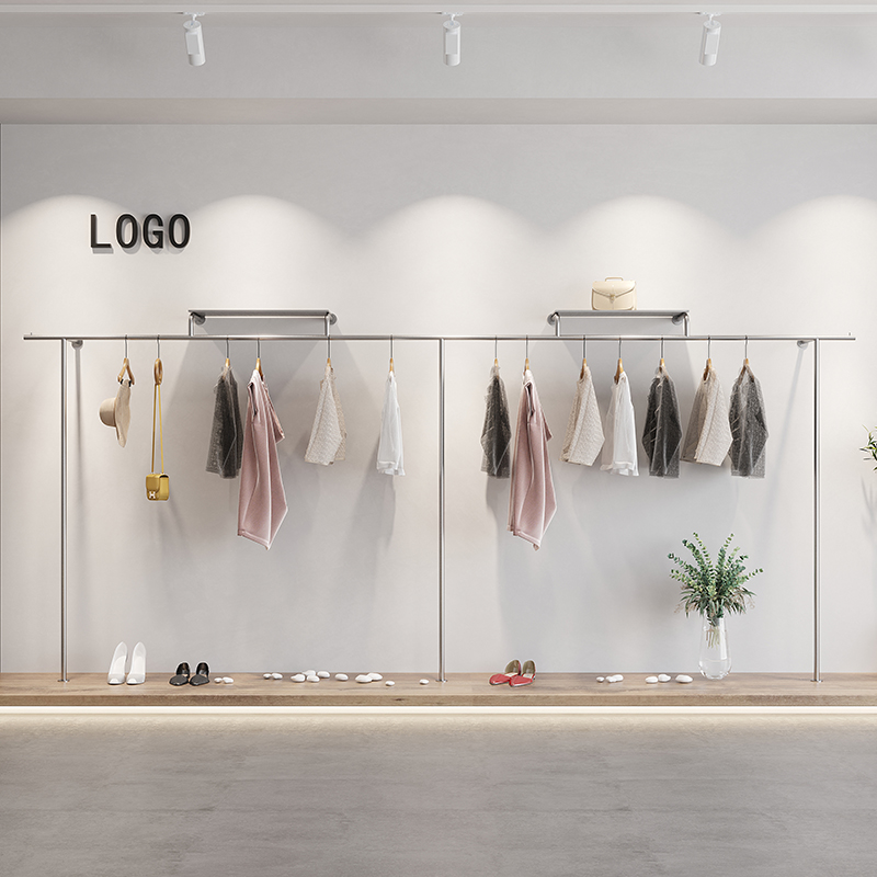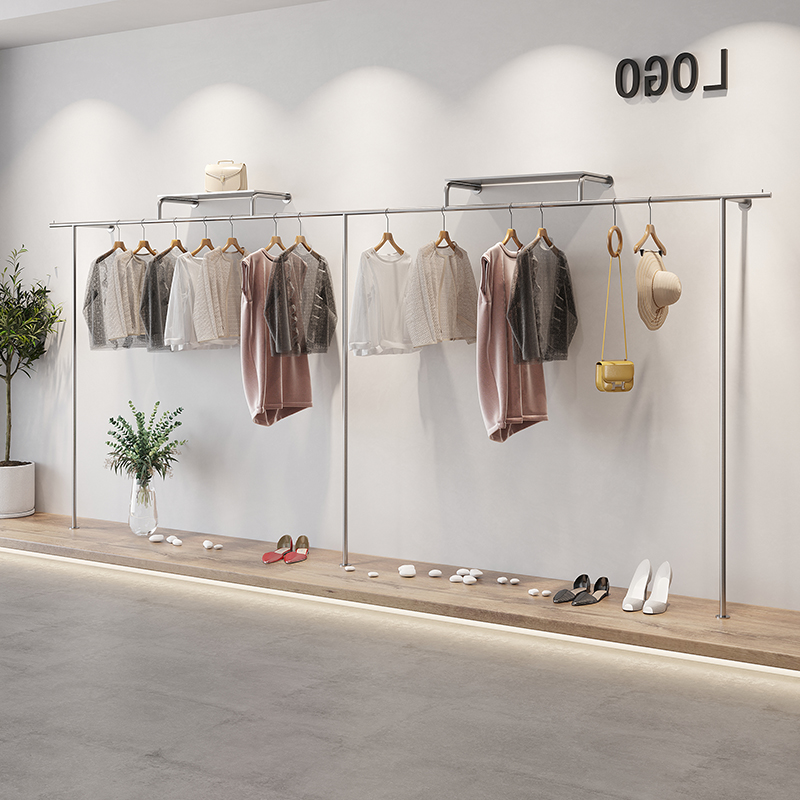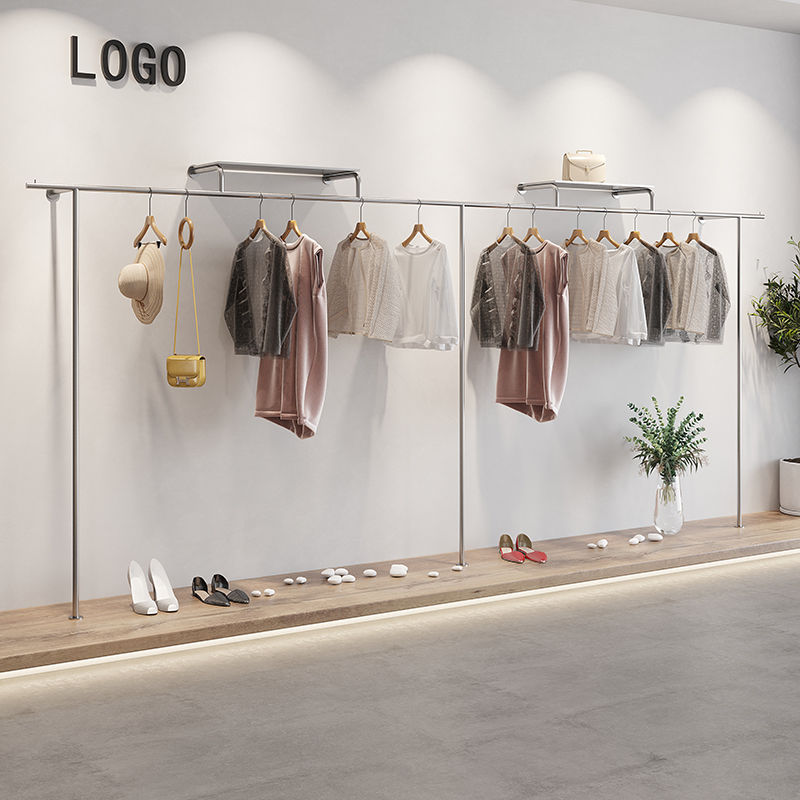 Clothing Store Show Shelf Stainless Steel Wire Drawing Upper Wall Floor Hanging Clothes Rod Men And Women Children's Clothing Store Special Shelf Display Shelf
