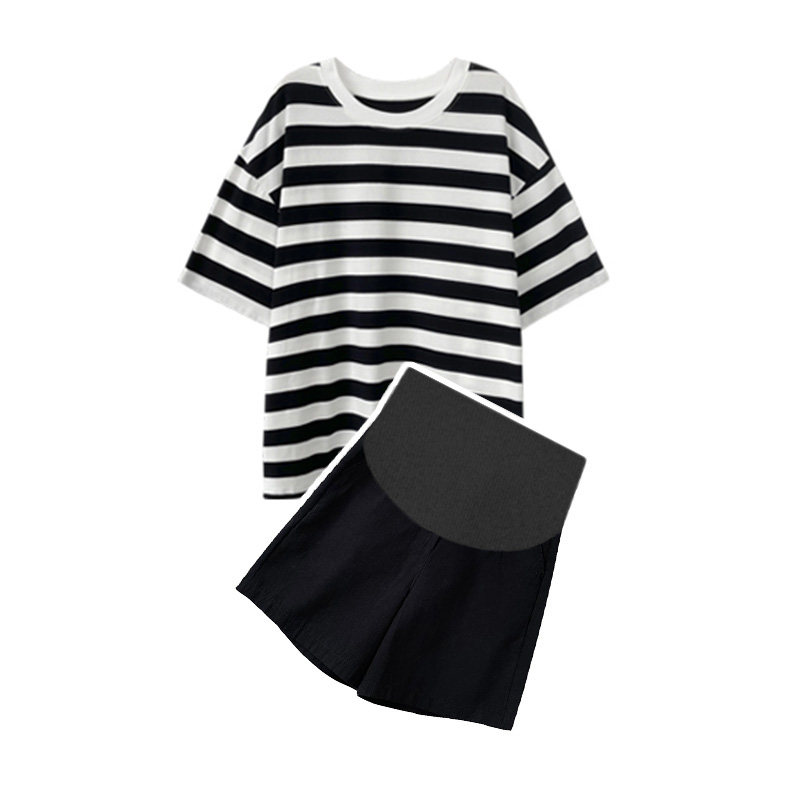 Maternity suit fashion new Korean version summer short-sleeved shorts casual sports large size net red belly pants two-piece set