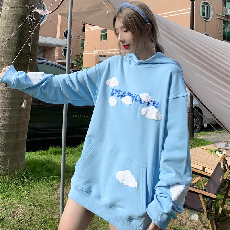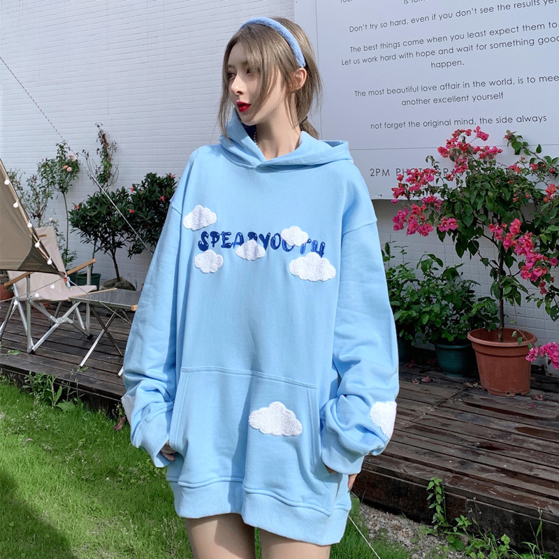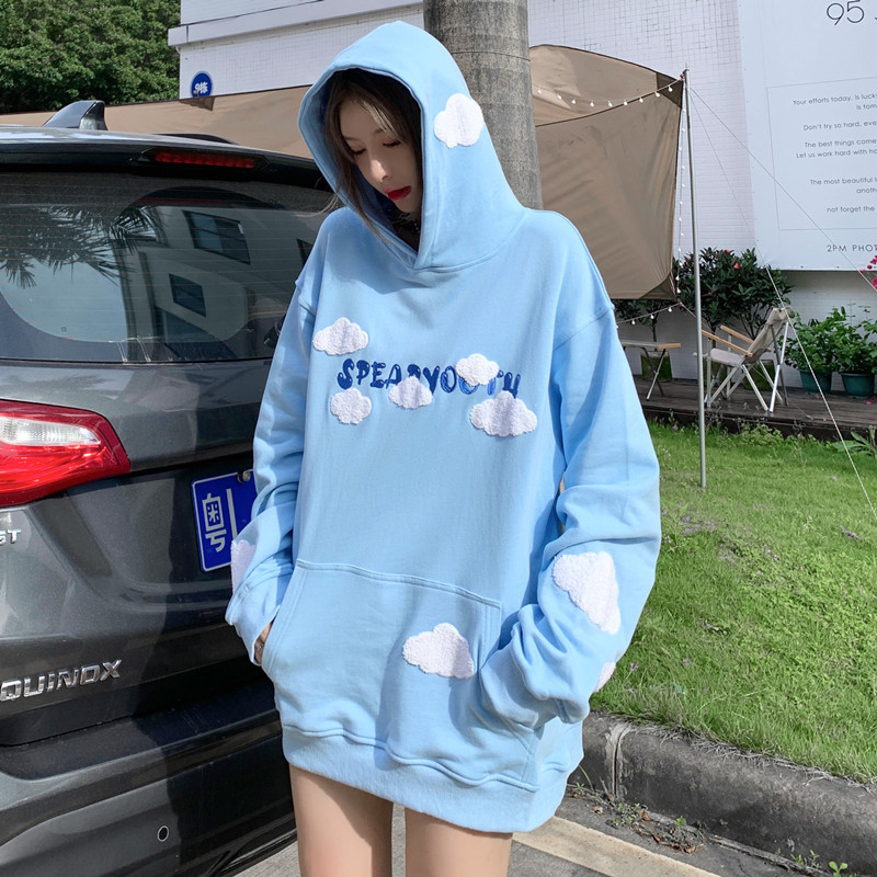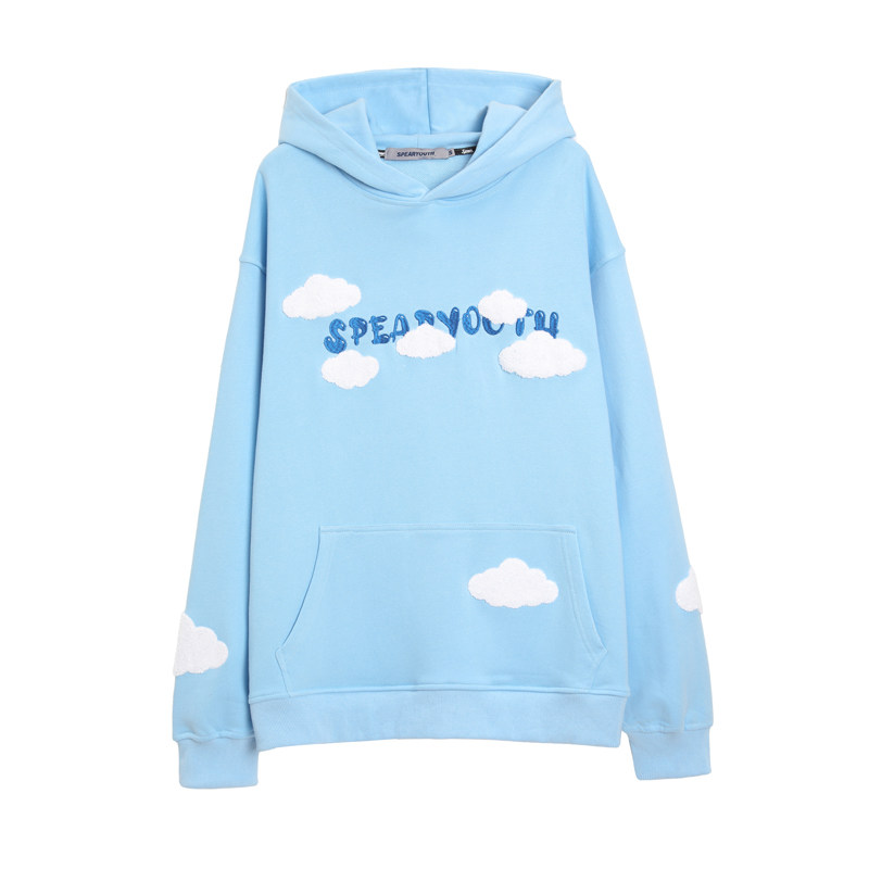 SPEAR YOUTH original cloud cloth pasted embroidered vests sweet men and women loose hooded hoodie autumn