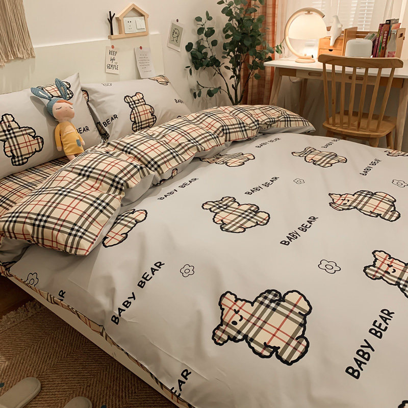 Four pieces of full cotton pure cotton summer small frescoed sheet quilt cover 1 8 Dormitory Three sets of dins bed bedding Spring and autumn
