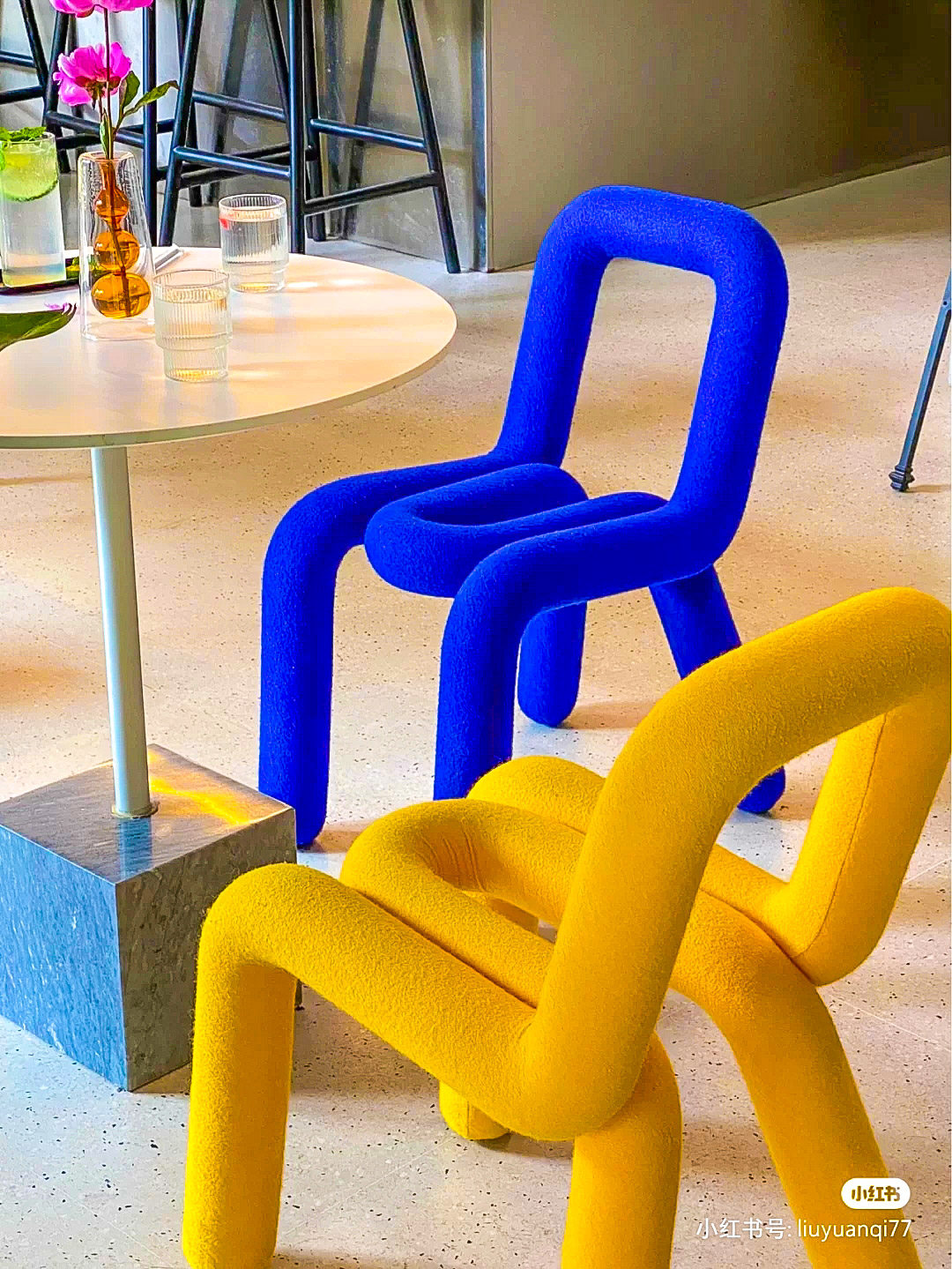 Klein blue chair Klein cushion Klein blue Flowers Tea Table Klein Blue for blue Vase 6 Pieces Klein Coffee Cup Mat Red Chair Grey Chair Ink Green Chair Orange Chair Black
