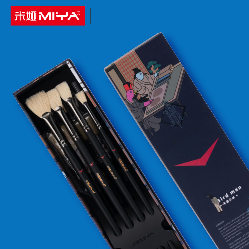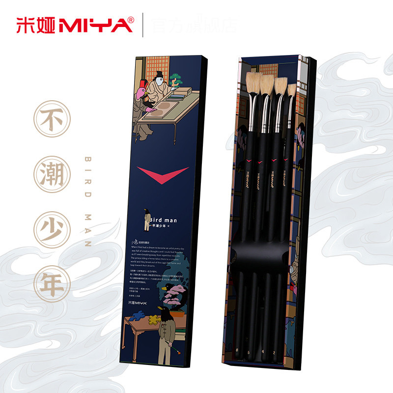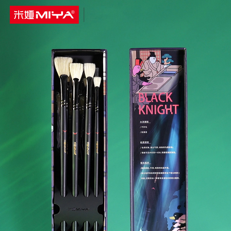 Mia Black Knight Watercolor Pen Set Acrylic Oil Painting Not Tide Juvenile Gouache Brush Set Fan-shaped Pen Hook Line Brush Pen Beginner Art Examination Recommended Washed Bristle Brush 11 Pack