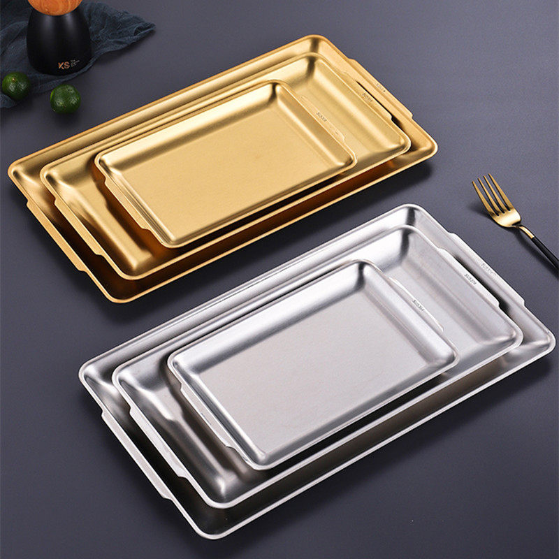 304 stainless steel Korean barbecue plate rectangular barbecue plate hot pot preparation plate flat bottom tray with ears square plate