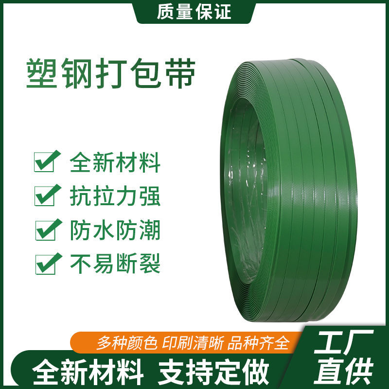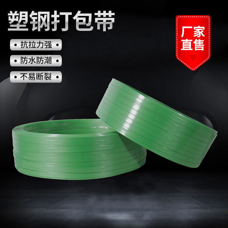 PET plastic steel strip 1608 green plastic steel band handmade plastic beating bag with green strapping with plastic steel slapped bag