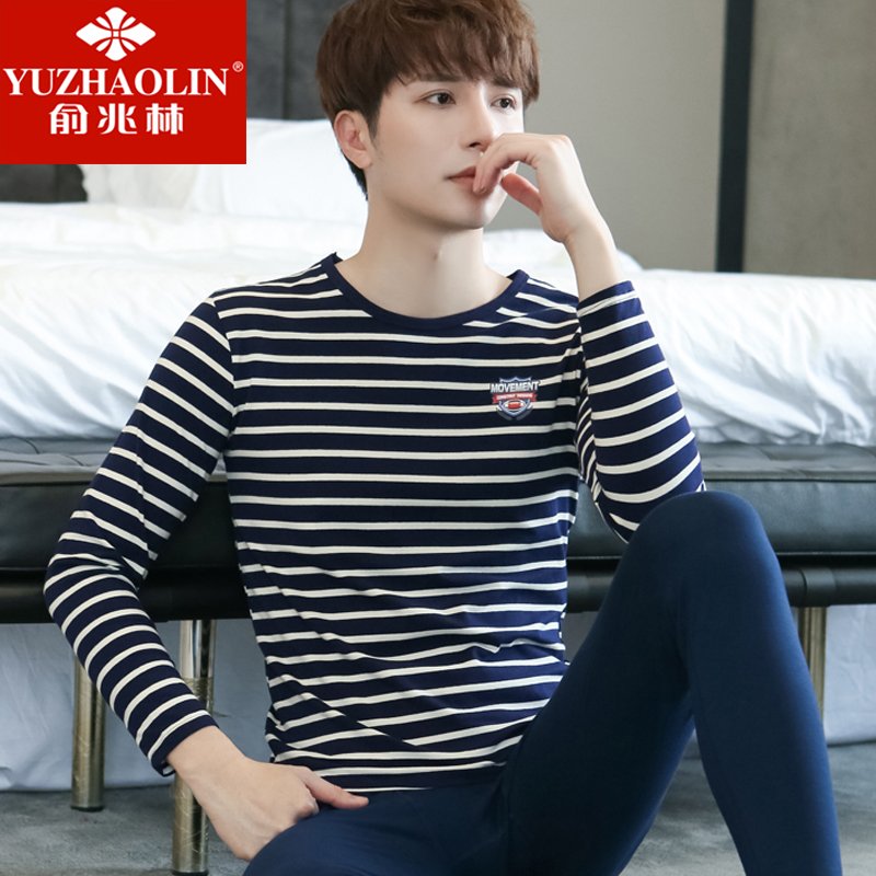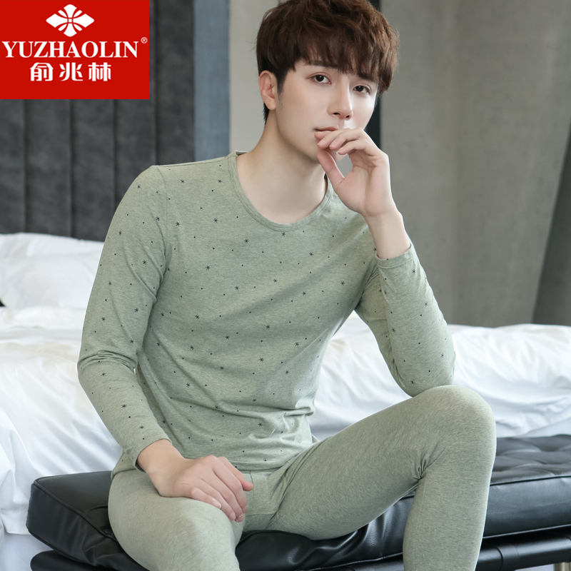 Yu one trillion Lin Men's Pure Cotton Autumn Clothes Sanitary Pants Suit Thin section Young students can wear heat-generating clothes cotton sweater