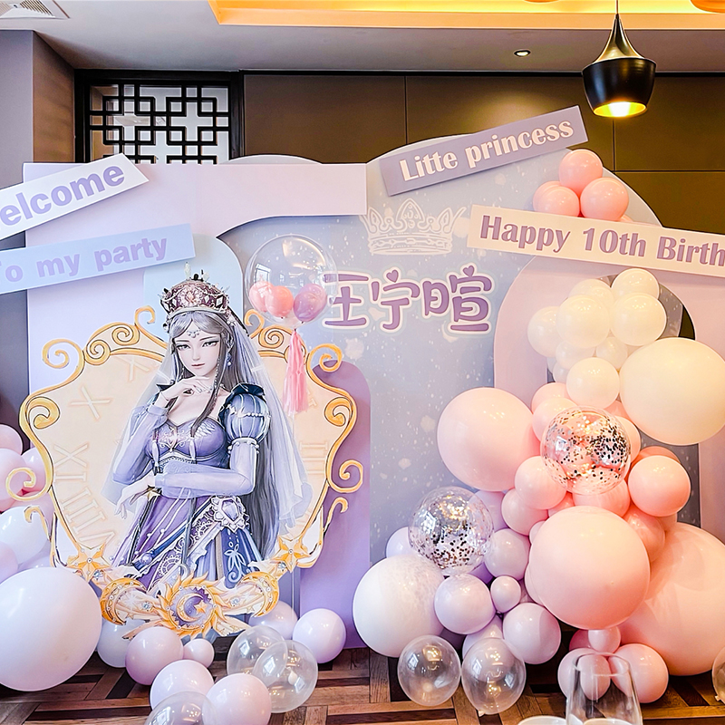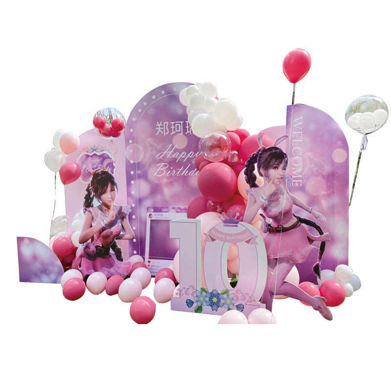 Douluo mainland pink theme girl baby birthday one hundred days party balloon background wall scene layout decoration