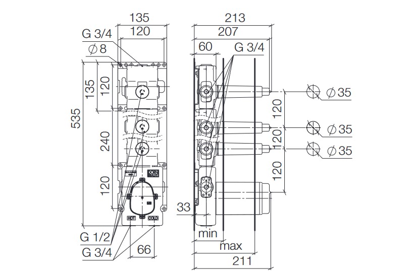 German contemporary Dornbracht dark buried water-mixing thermostatic valve core embedded shower faucet 3553197090