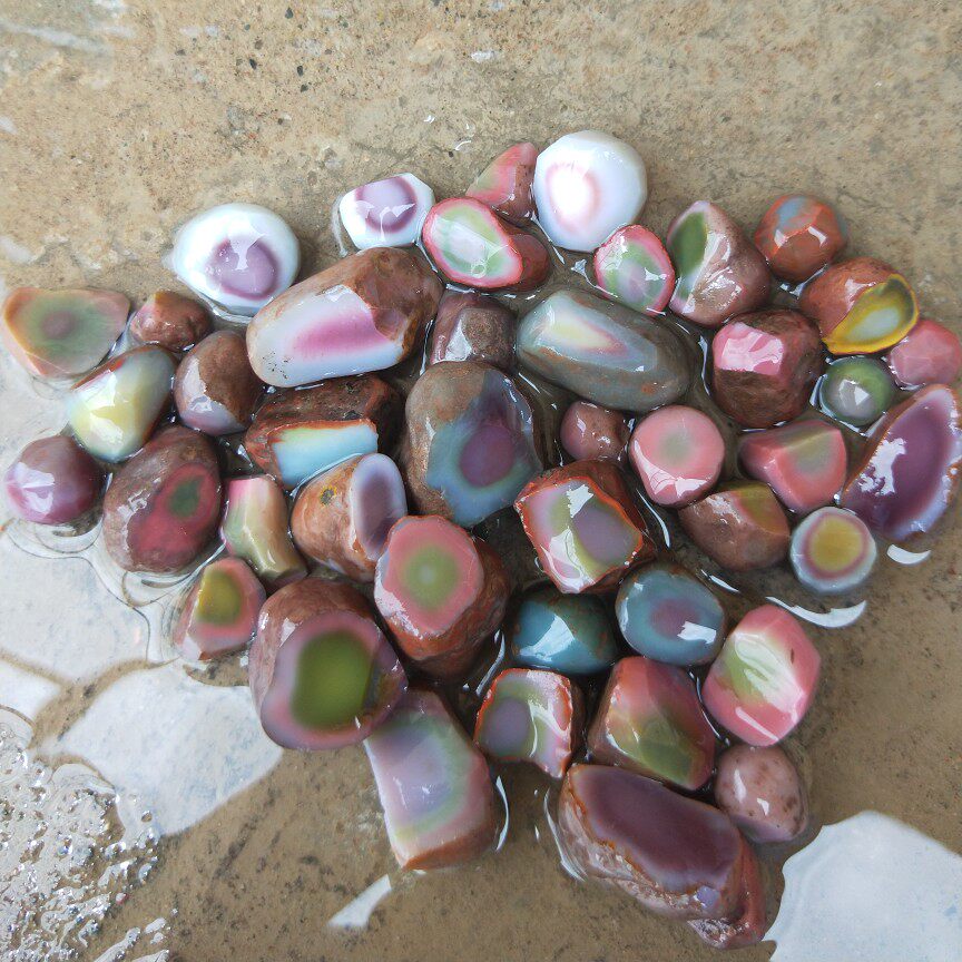 Salt source raw mine Five Caiyuan jade original stone beads Each full hand polished natural color Please discretiate selfies are invalid-Taobao