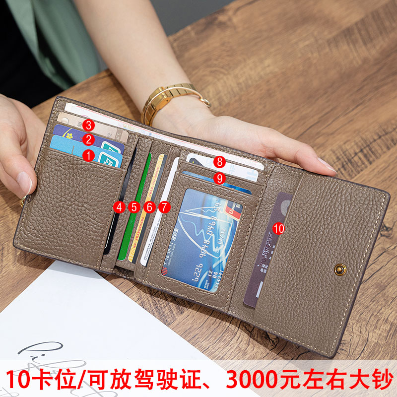 Folding wallet Women Summer Short Leather 2021 New High-end Atmosphere Soft Leather Head Layer Cow Leather Thin and Versatile Small