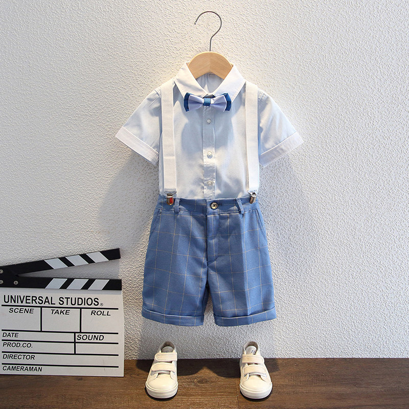 Waistcoat suit four pieces (waistcoat shorts short sleeve shirt collar tie) Baby bag suit Four pieces (short sleeve shirt shorts cuddling bag collar tie)