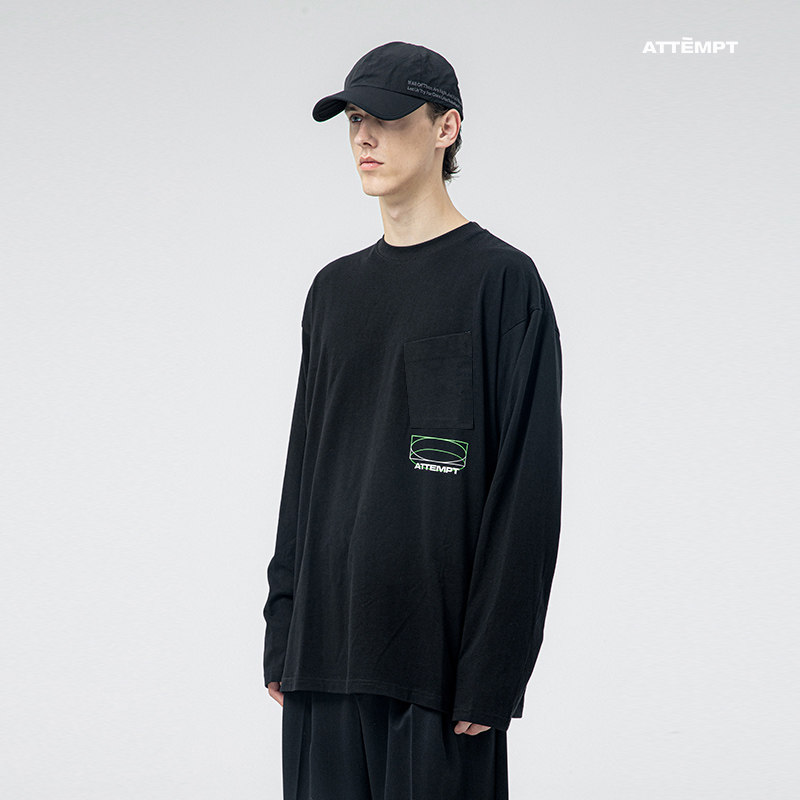 ATTEMPT - Set - up products Geometric shadow pocket long - sleeve T - shirt