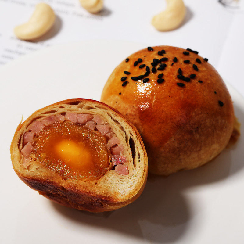 Keto egg yolk crispy mooncakes saccharin-free flourless low-carb ketogenic snacks Xuanwei ham mooncakes Shandong Qingdao mooncakes