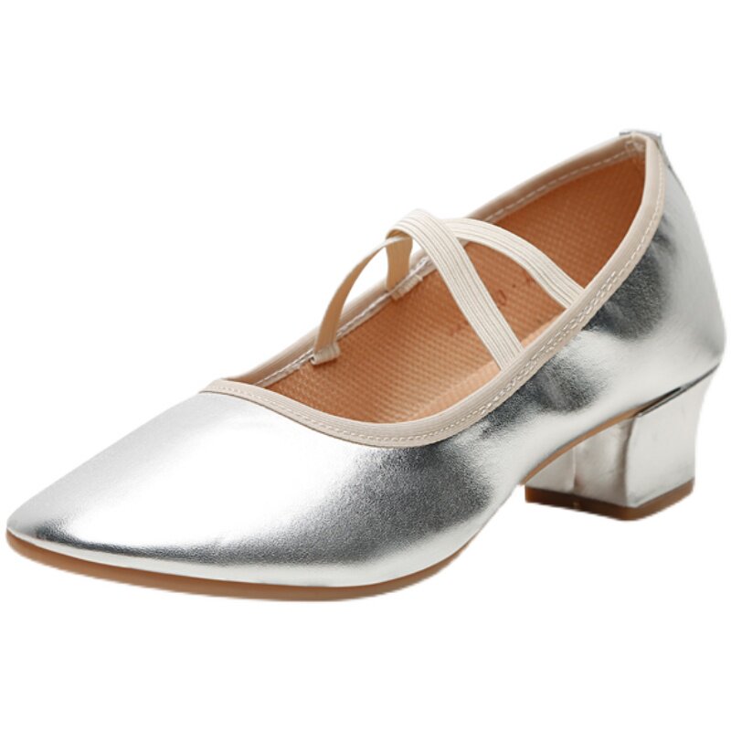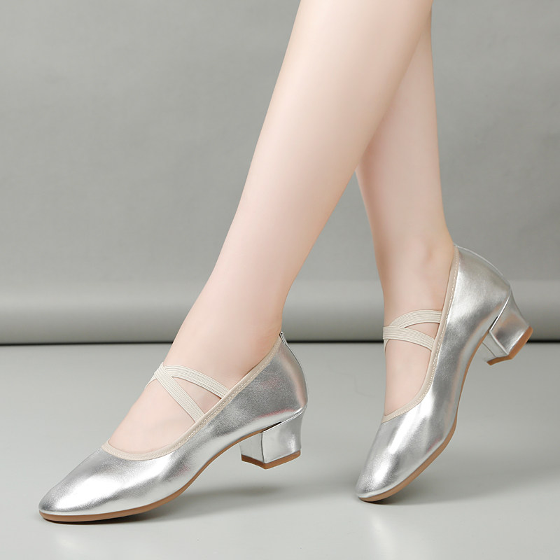 Silver professional dance shoes female summer soft sole practice shoes outside the square dance shoes flat bulff soles anti-slip dance shoes