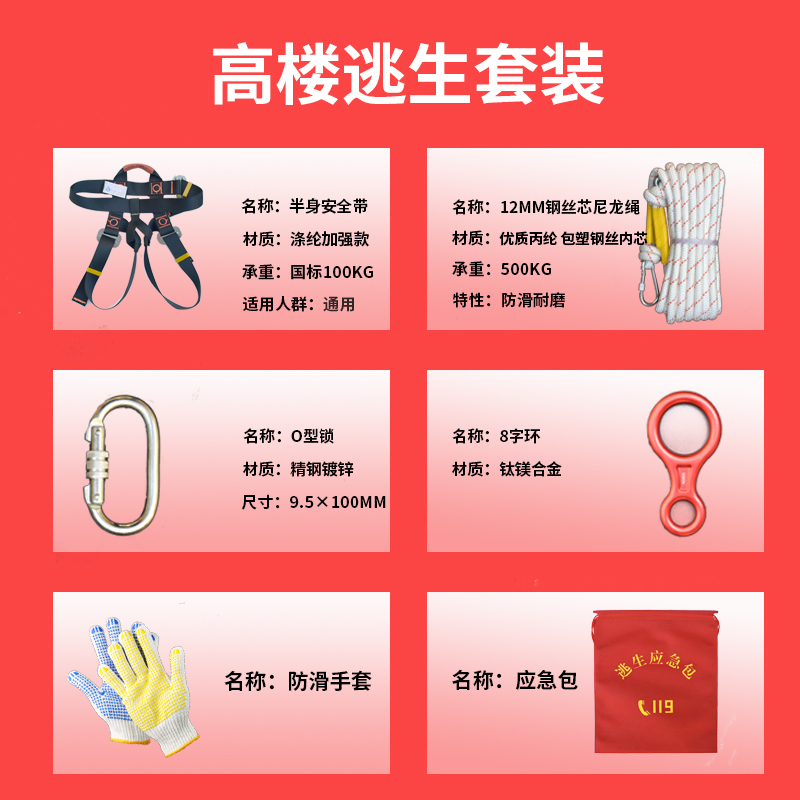 12mm steel wire core escape rope nylon safety rope high-rise household fire self-outdoor life-saving rope slow descender set