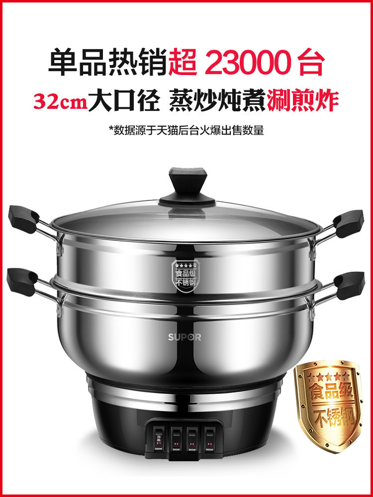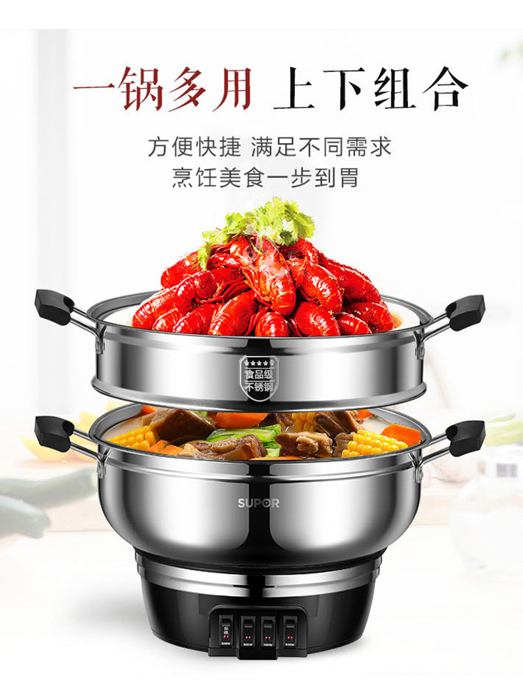 Supoir electric frying pan fried in cooking and frying electric boiler Home Multi-functional one-piece quick cooking pot non-stick electric hot pot