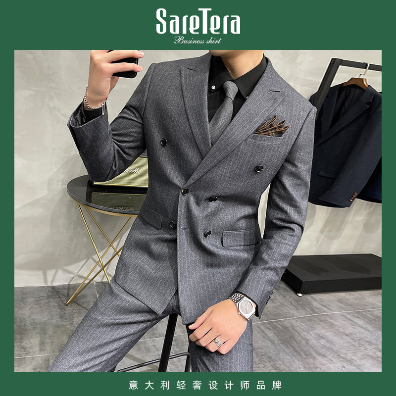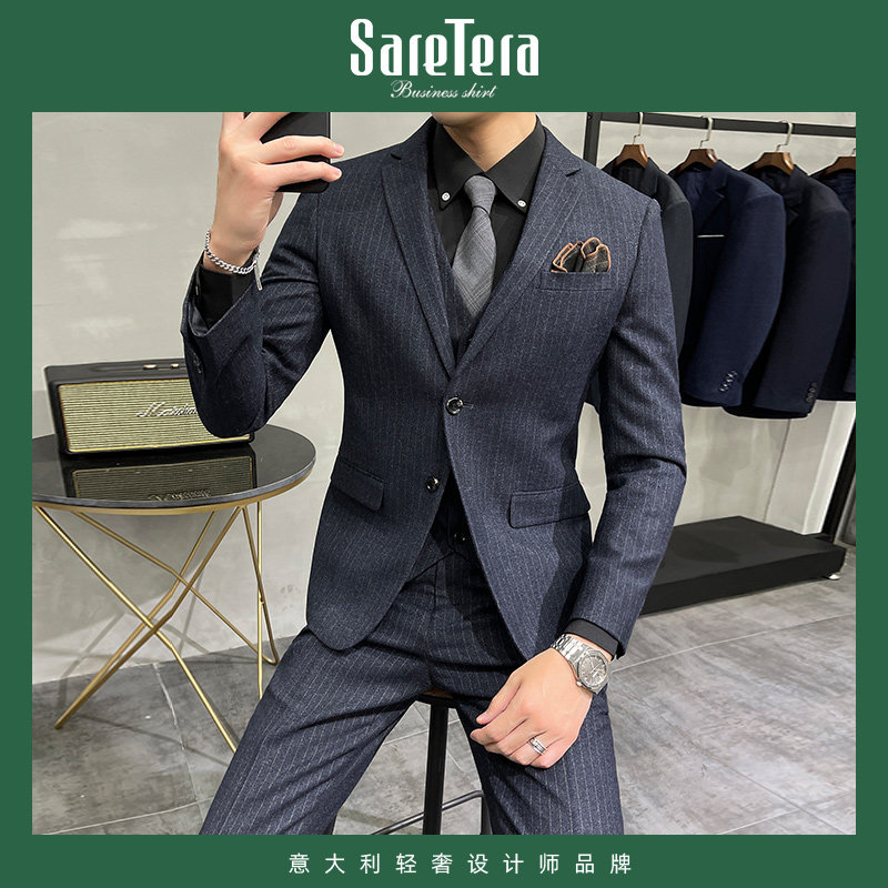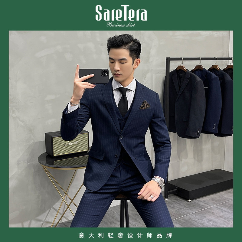 Saretera Striped Suit Suit Men's Business Professional Formal Wedding Dress Italian Slim Groom Suit