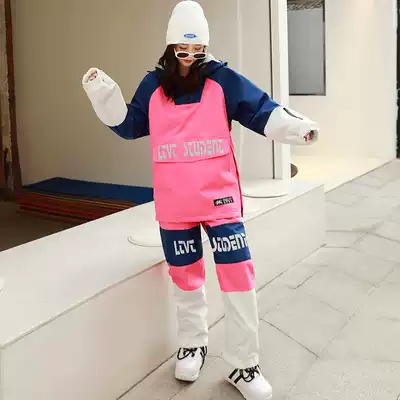 Winter ski suit sweater men's and women's veneer double board hoodie waterproof thick pink warm slim outdoor snow suit