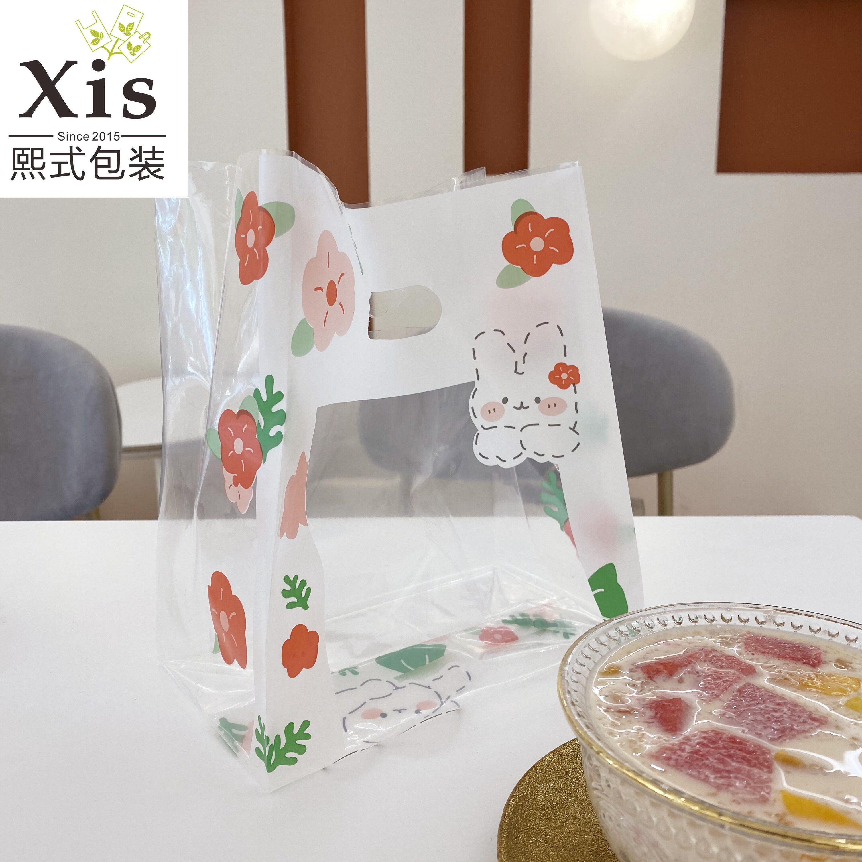 Cute White Rabbit Plastic Handbag Baking Dessert Takeaway Packaging Bag Salad Light Food Light Food Bag Stationery Jewelry Bag