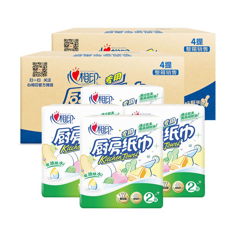 Heart-to-heart printing kitchen special oil-absorbing paper with thickened non-scraping paper towel oil-wiping roll toilet paper box 8 rolls