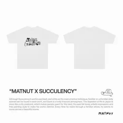 Matnut x Succulency artist co-name illustration white black niche graffiti country tide short sleeve
